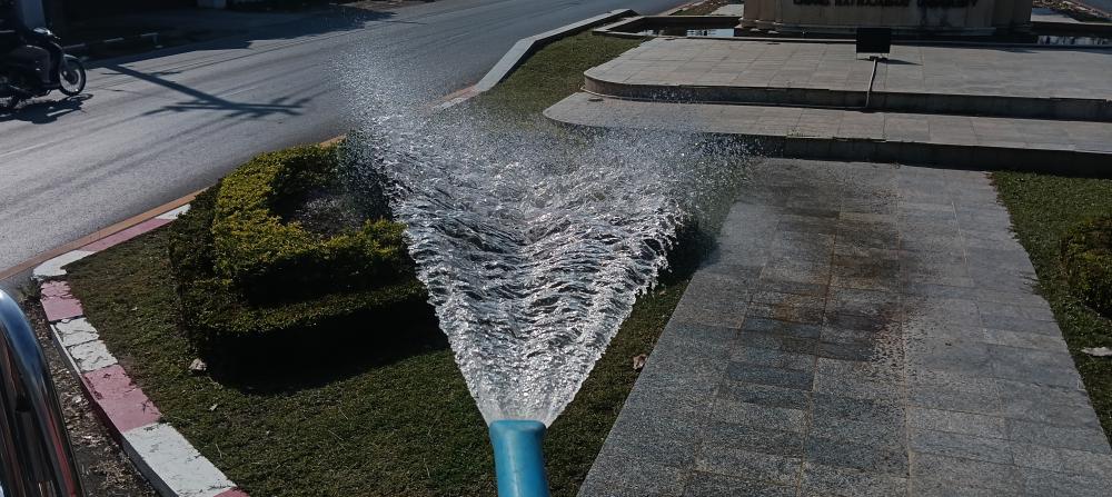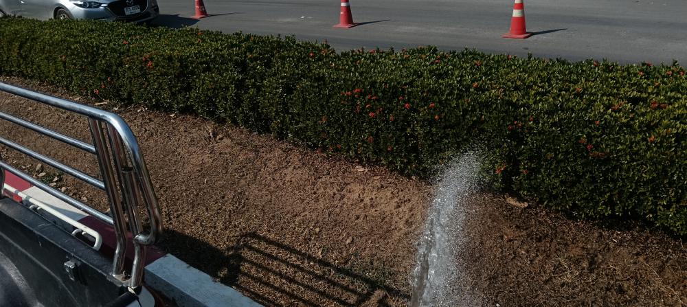 รดน้ำดอกไม้และหญ้าภายในมหาวิทยาลัย