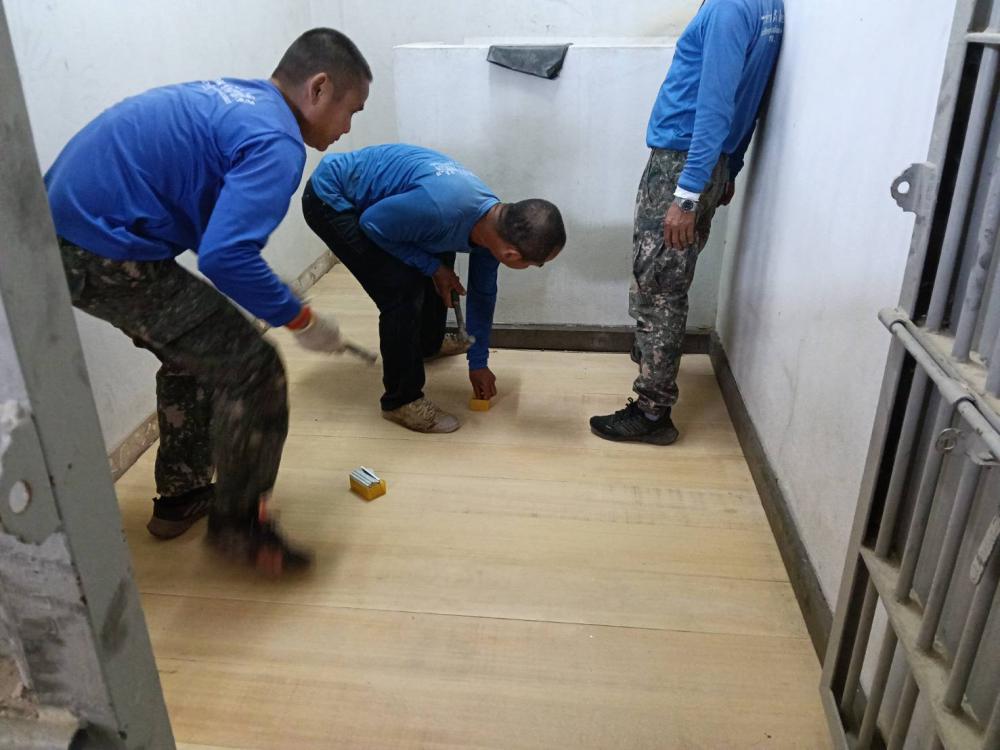 ปูพื้นไม้ห้องผู้ต้องขังสภอ. บ้านดู่
