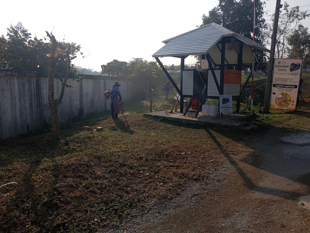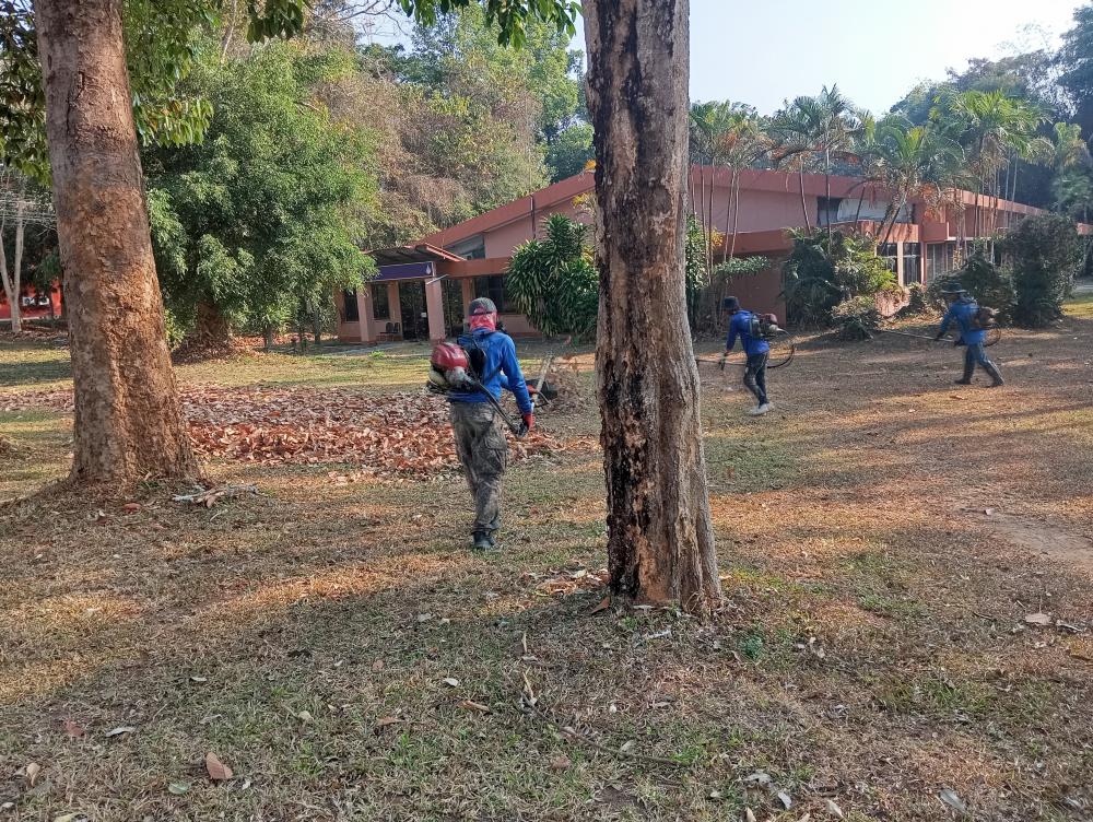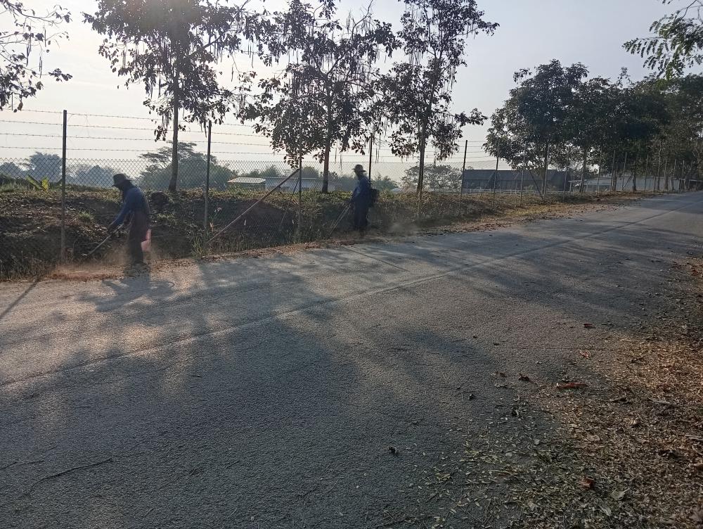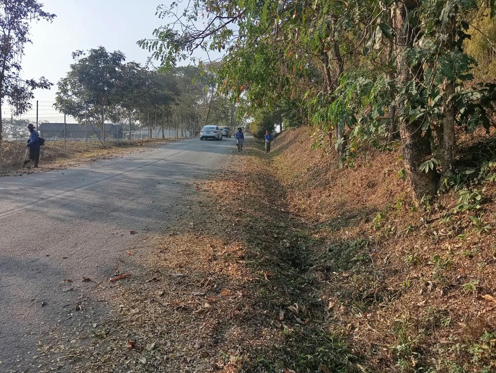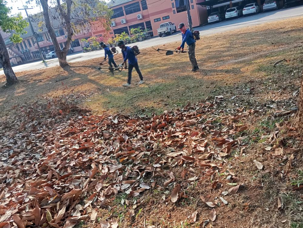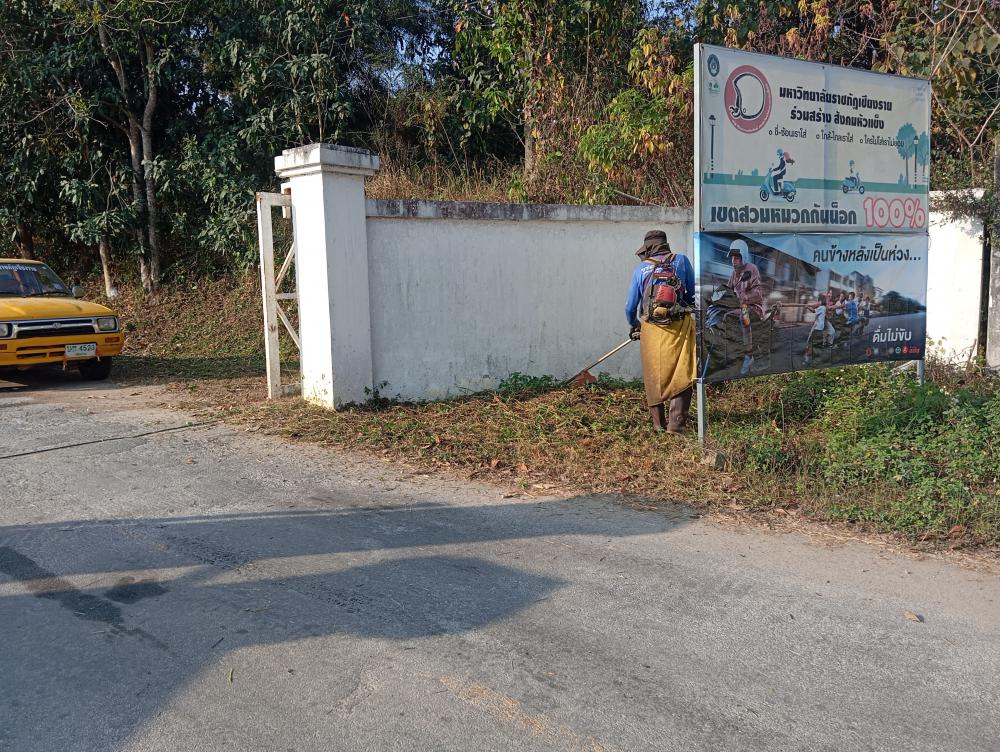 ตัดหญ้ารอบตึกชาติพันธุ์จนถึงประตู 4