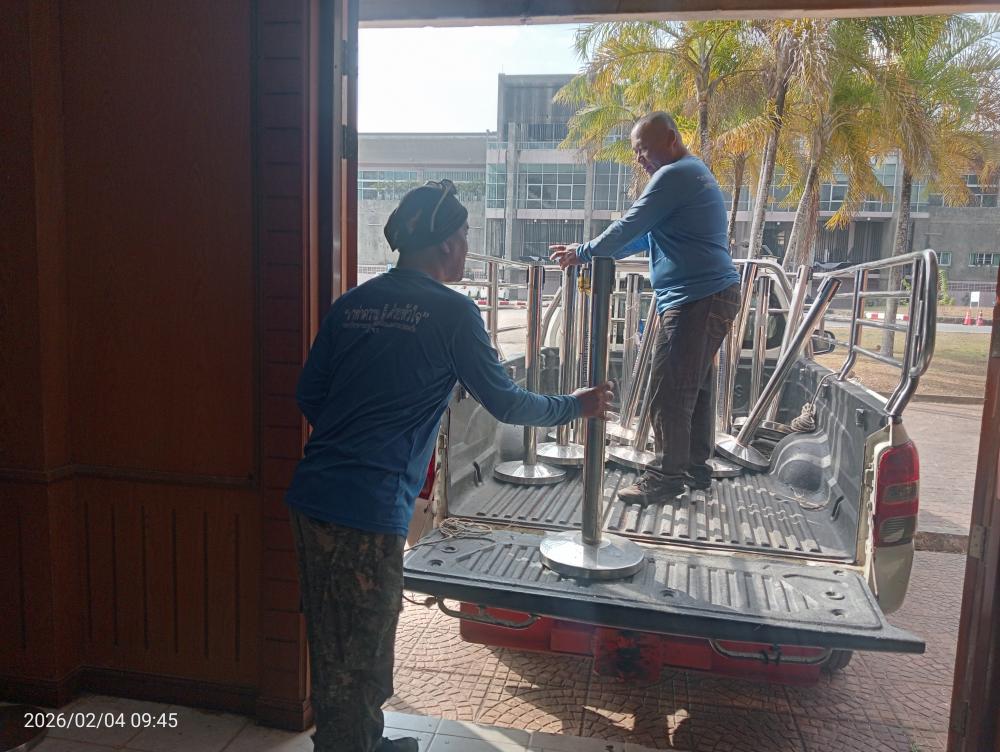 ขนย้ายราวกันจากกาสะลองมาที่หอประชุมใหญ่