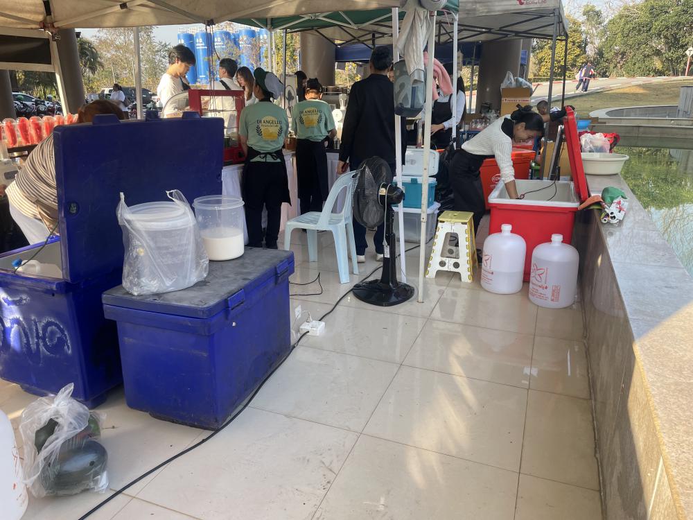 สำนักบริหารทรัพย์สินฯ เดินสายไฟบริเวณโซนจำหน่ายสินค้าจุดจอดรถ VIP ข้างหอประชุมใหญ่ใช้บริการจำหน่ายอาหารวันเลือกตั้งและลงประชามติ ในวันที่ 8 กุมภาพันธ์ 2569