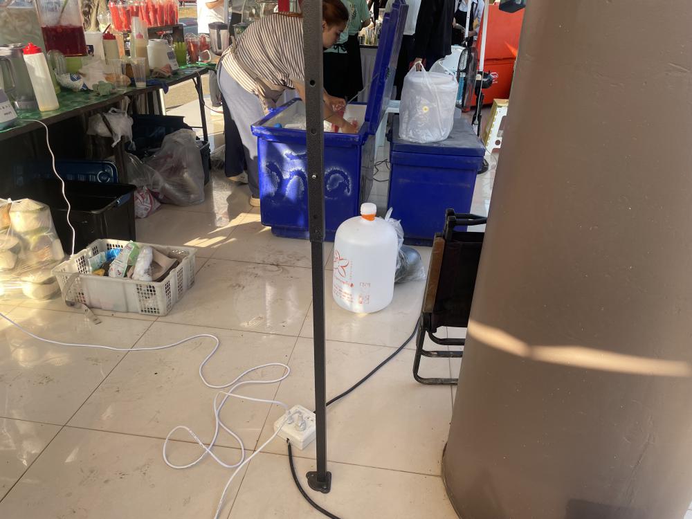 เดินสายไฟบริเวณโซนจำหน่ายสินค้าจุดจอดรถ VIP ข้างหอประชุมใหญ่ใช้บริการจำหน่ายอาหารวันเลือกตั้งและลงประชามติ