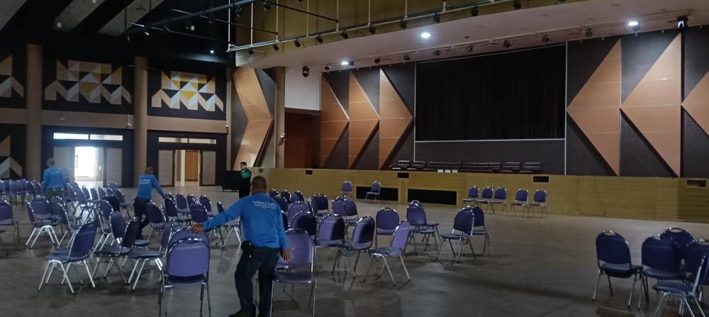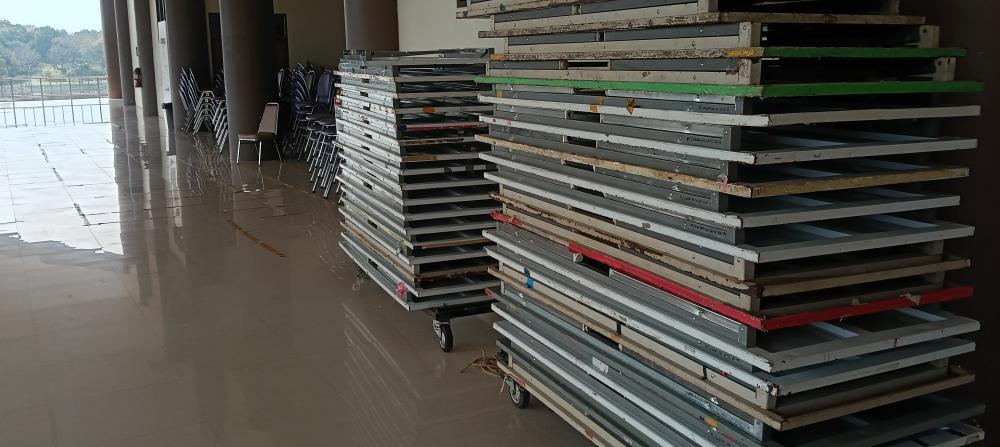 กองบริหารกายภาพฯ เก็บของ อุปกรณ์ต่างๆ หลังเสร็จสิ้น งาน เลือกตั้ง