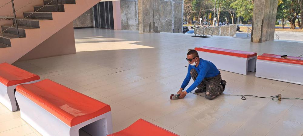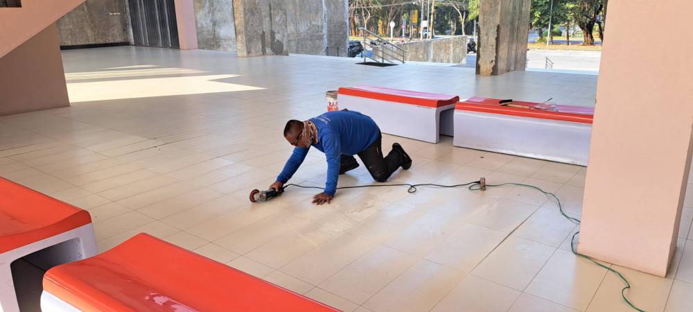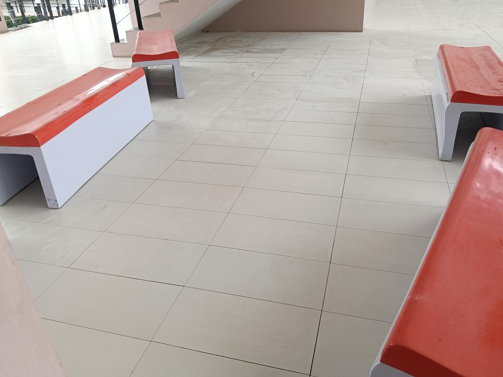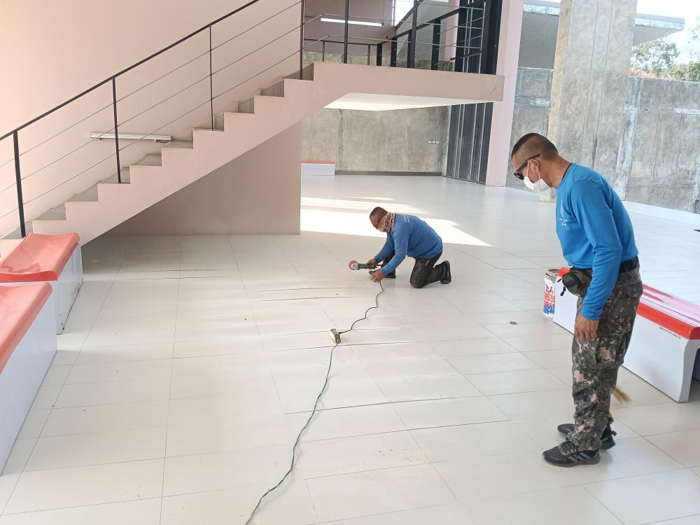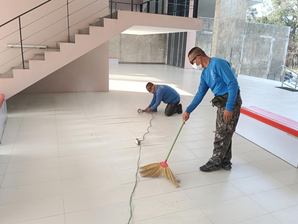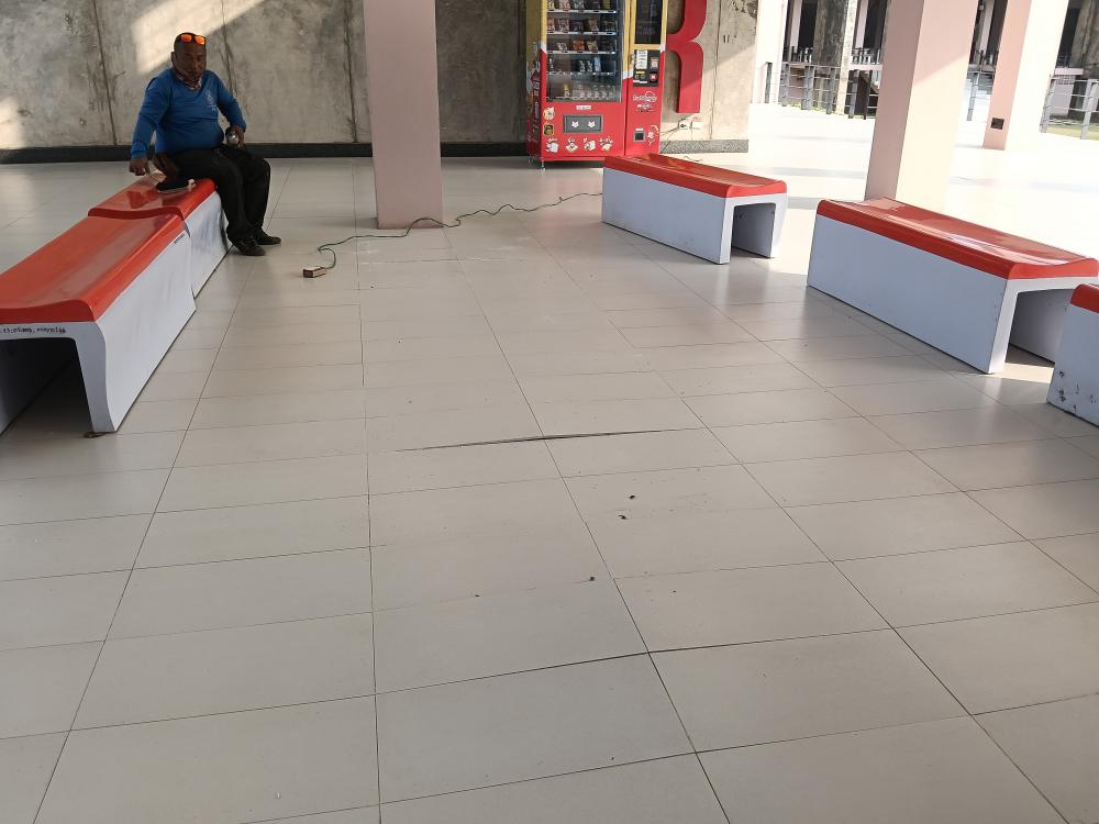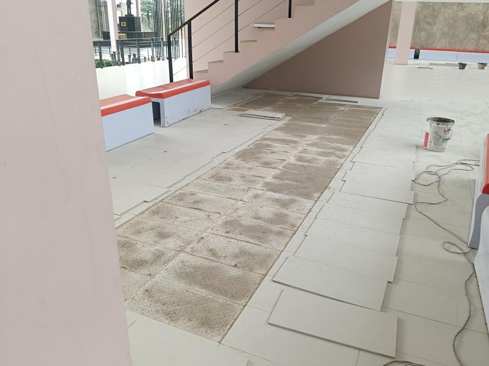 ซ่อมกระเบื้องปูพื้นทางเดิน ตึกอธิการบดี ฝั่งสำนักส่งเสริม