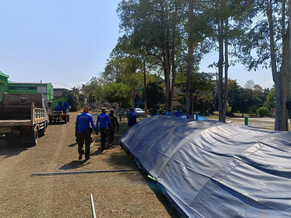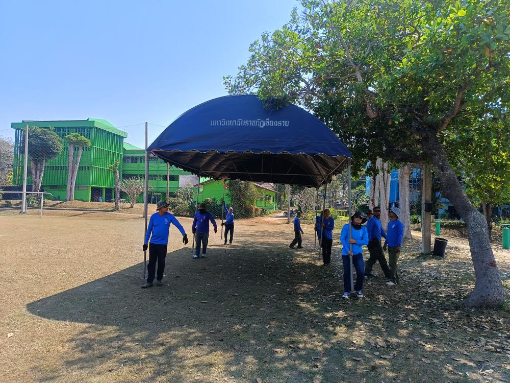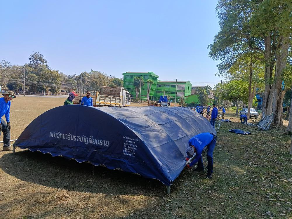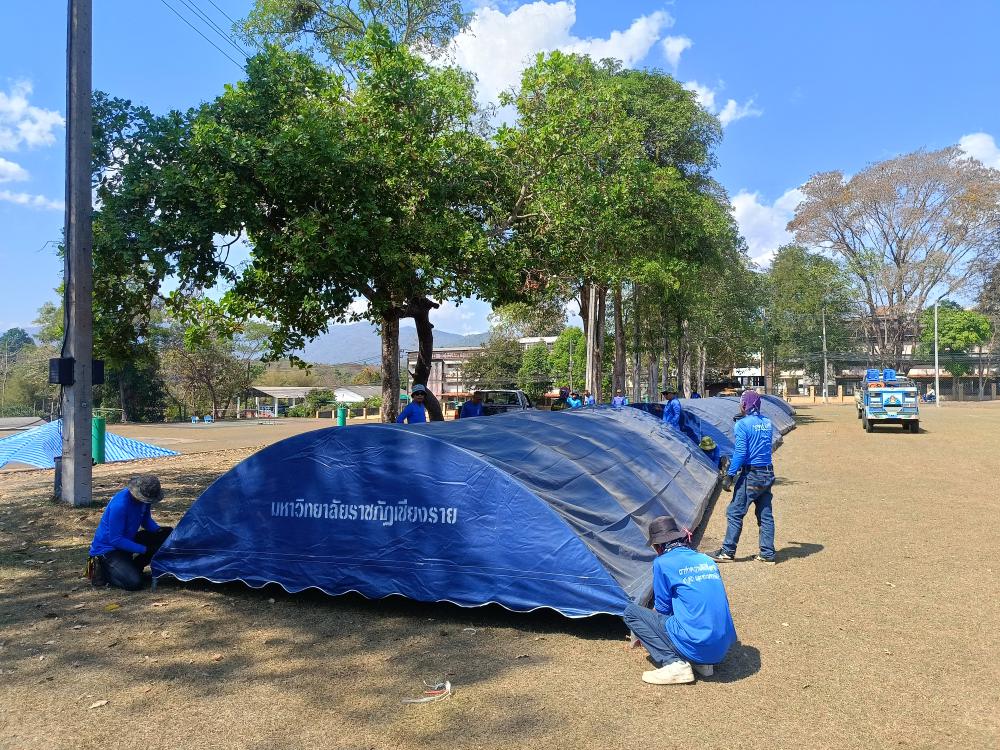 กองบริหารกายภาพฯ กางเต้นท์สนามกีฬารวมใจให้นักศึกษาคณะครุศาสตร์