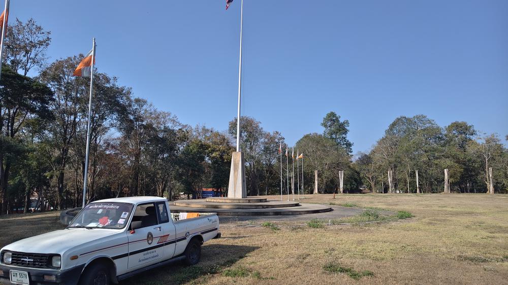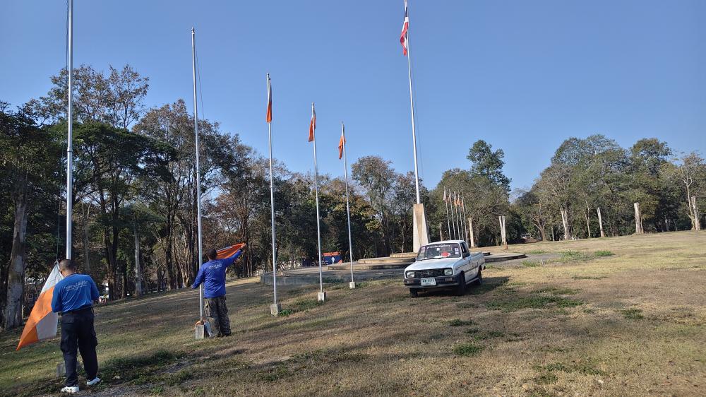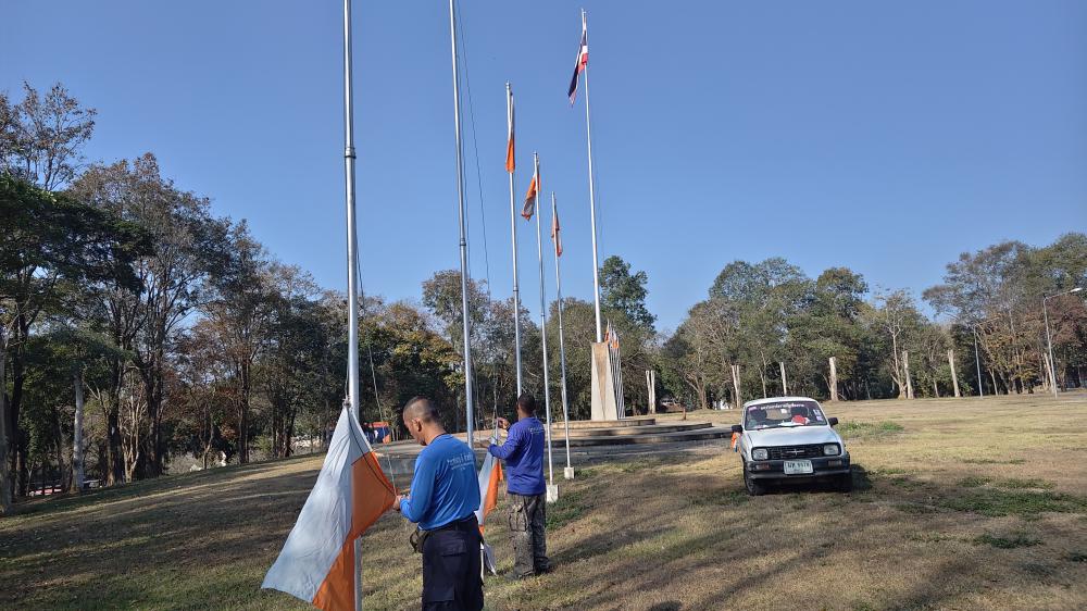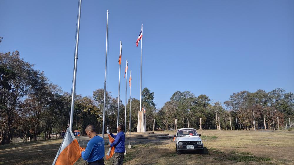 เปลี่ยนธงชาติและธงมหาลัยบริเวณเสาธง ด้านหน้าสำนักงานบริหารงานกลาง