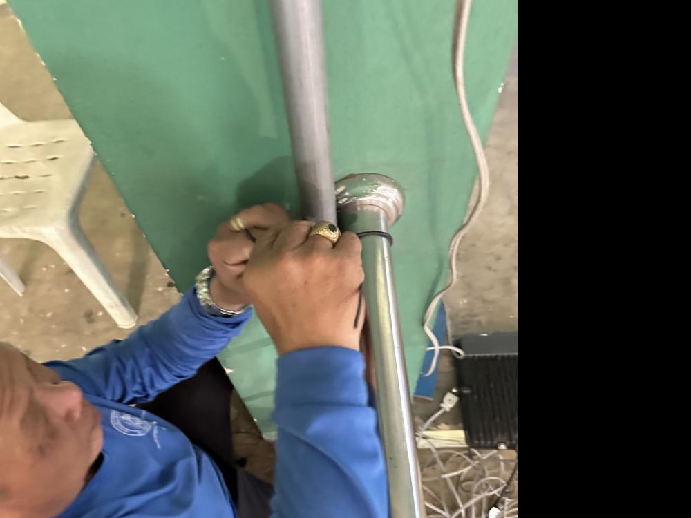 กองบริหารกายภาพฯ ติดตั้งไฟสปอตไลท์ เพิ่มแสงสว่างสนามวอลเลย์บอล ภายในอาคารโรงยิมเนเซี่ยม