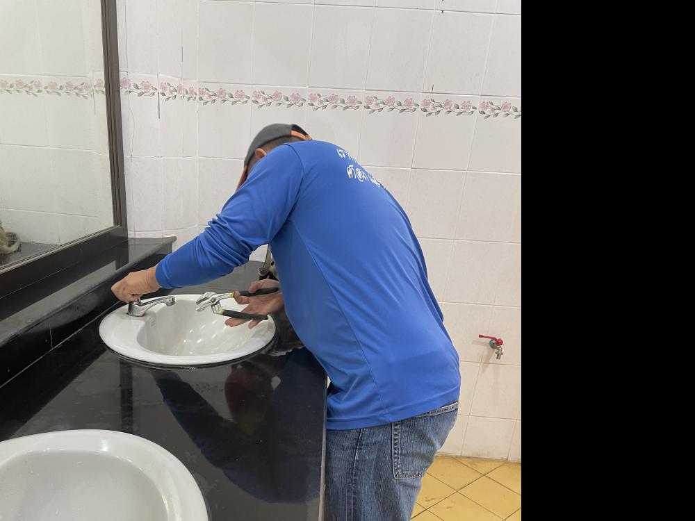 ตรวจสอบและซ่อมแซมห้องน้ำ ภายในหอประชุมใหญ่