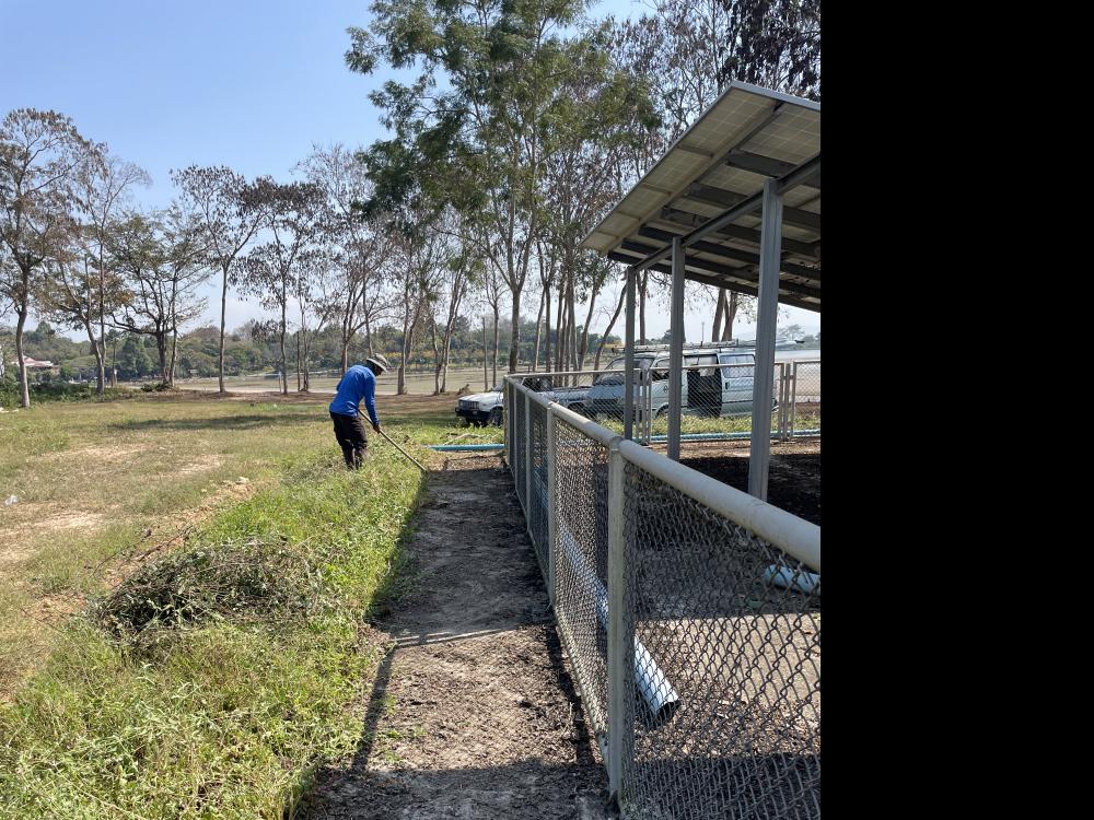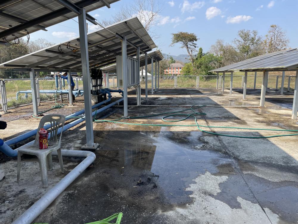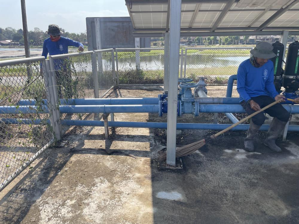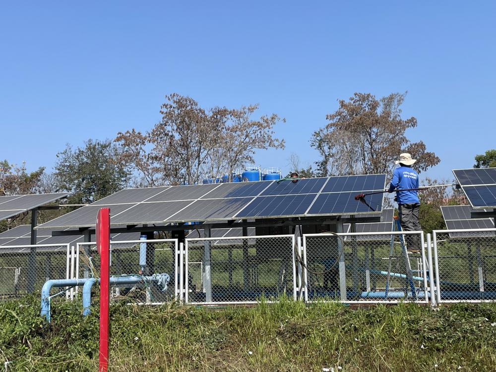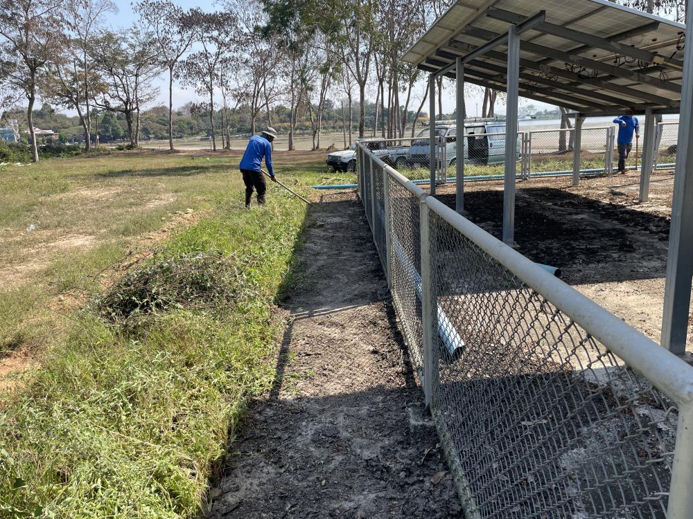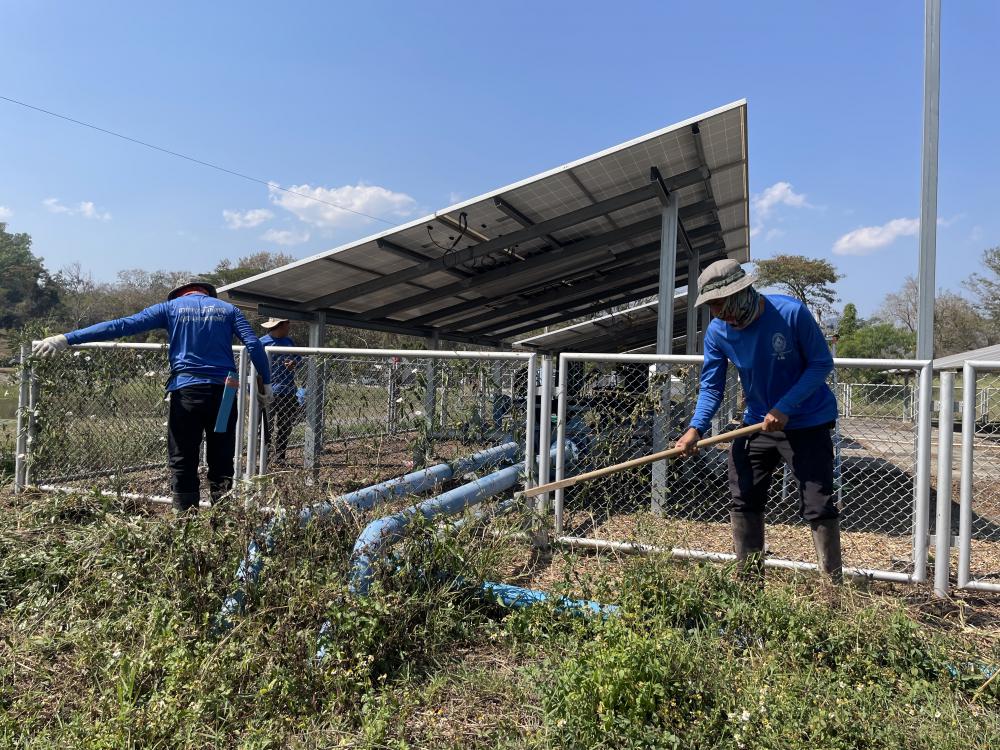 กำจัดวัชพืชภายในและบริเวณโดยรอบ ล้างทำความสะอาดแผงโซล่าเซลบริเวณปั้มน้ำพลังงานแสงอาทิตย์ประตู 3
