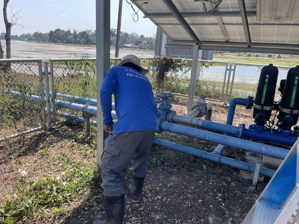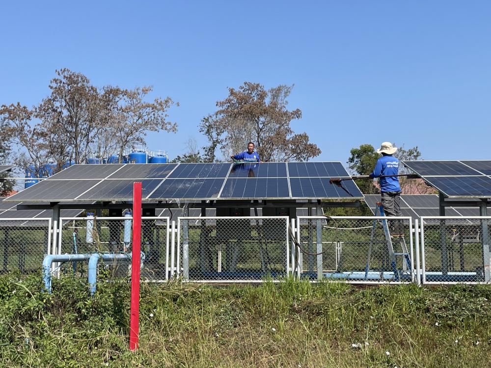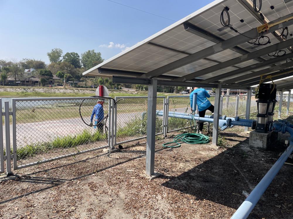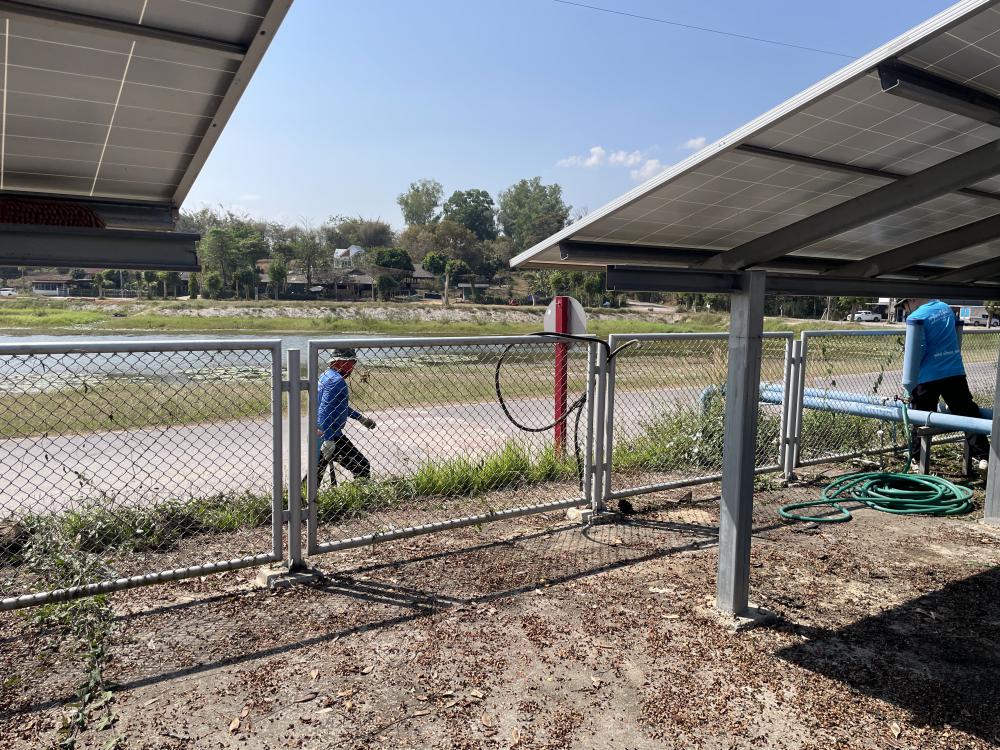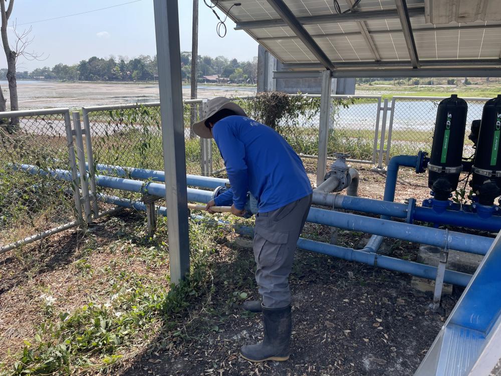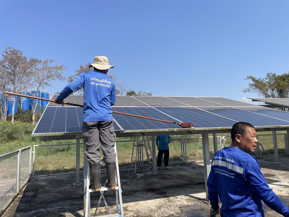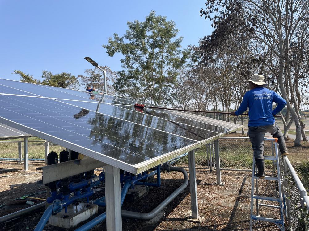 กำจัดวัชพืชภายในและบริเวณโดยรอบ ล้างทำความสะอาดแผงโซล่าเซลบริเวณปั้มน้ำพลังงานแสงอาทิตย์ประตู 3