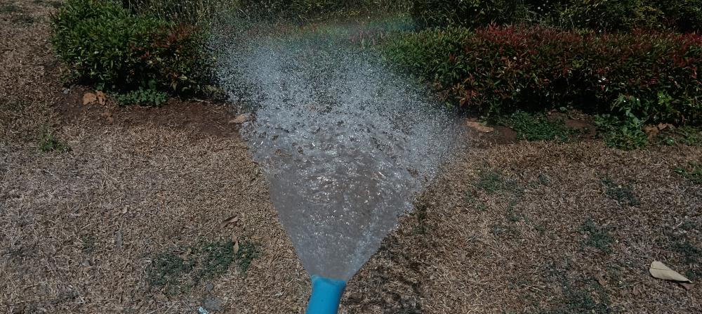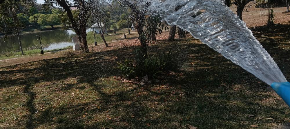 รดน้ำดอกไม้และหญ้าภายในมหาวิทยาลัย