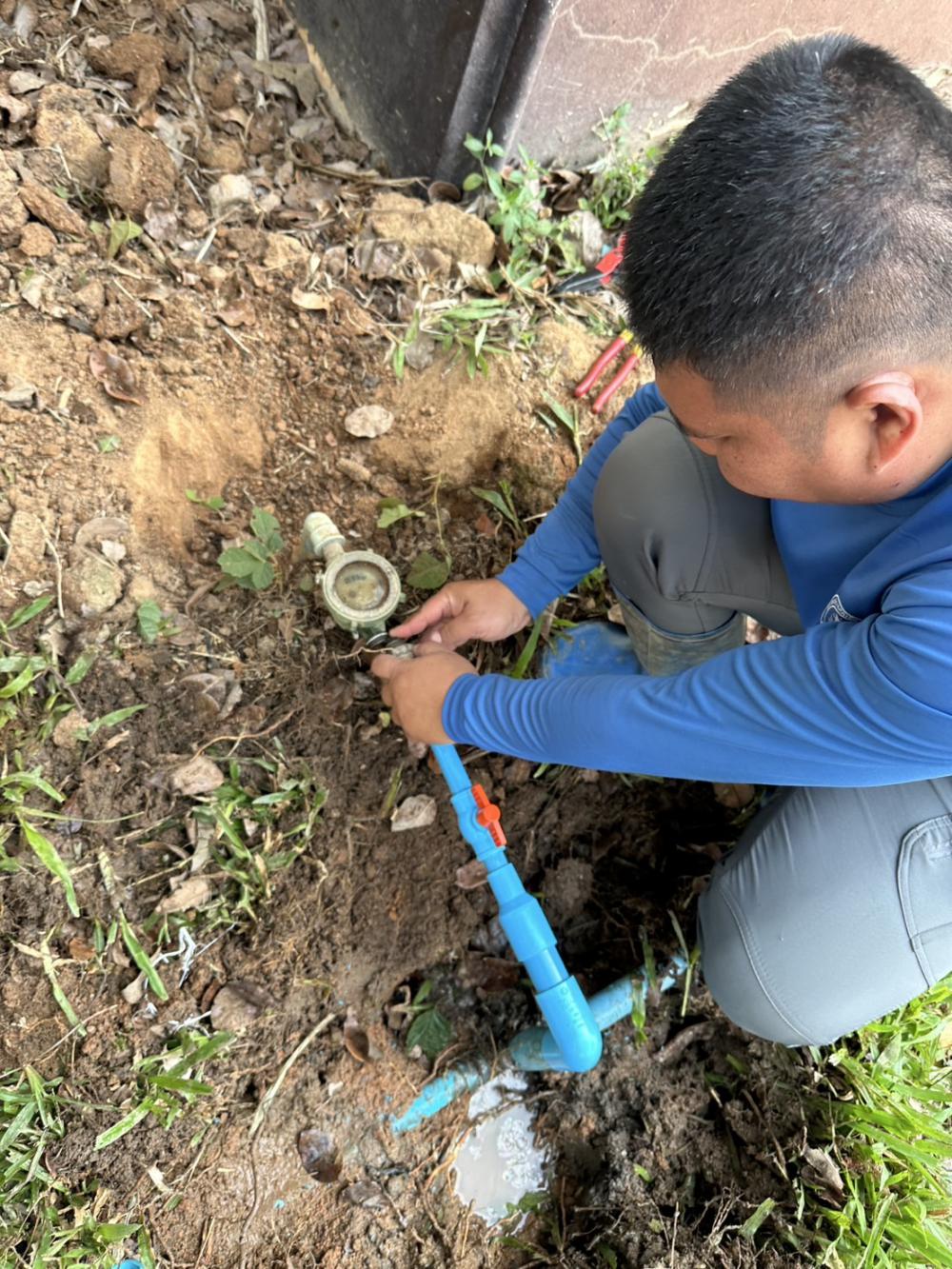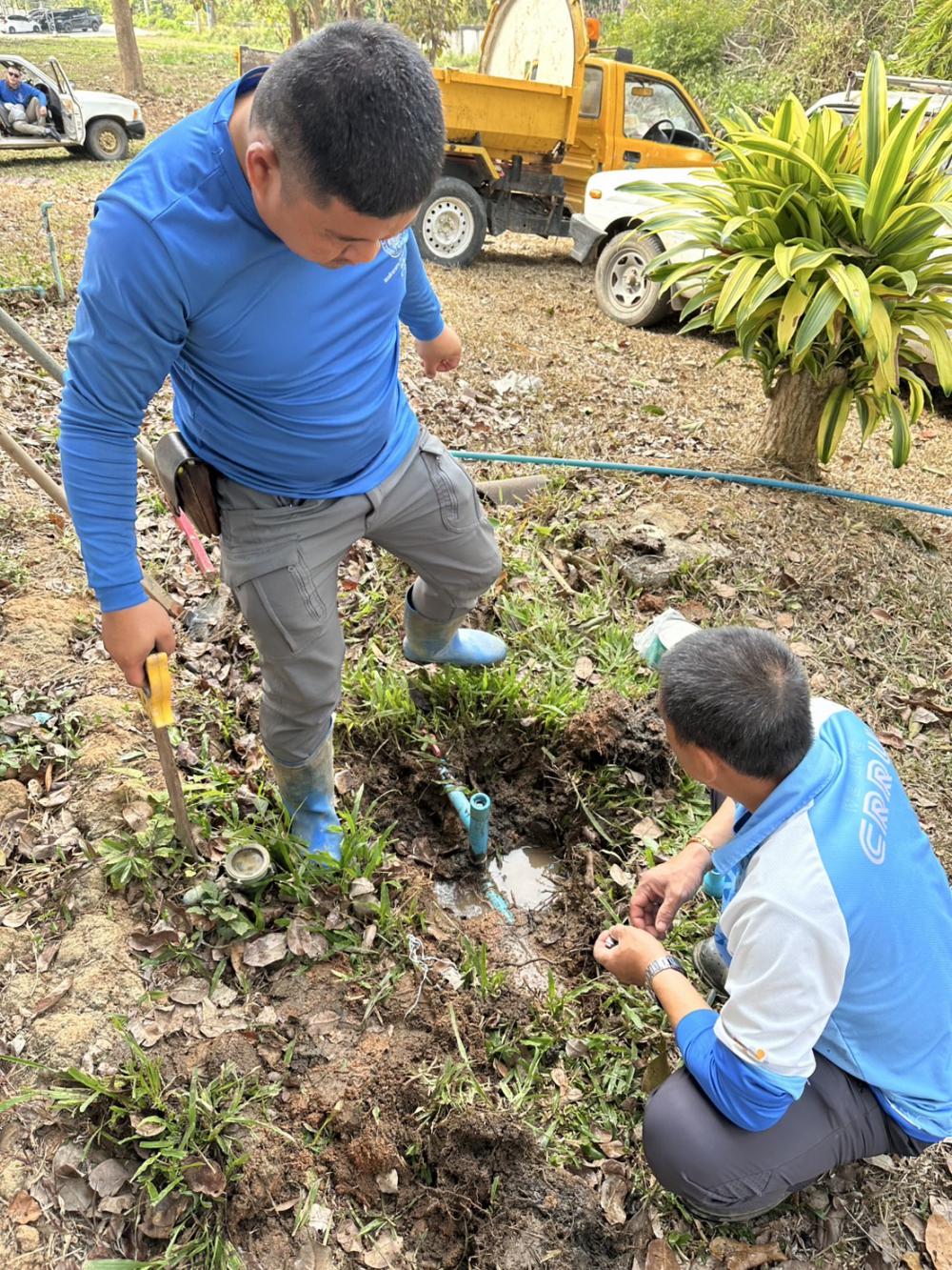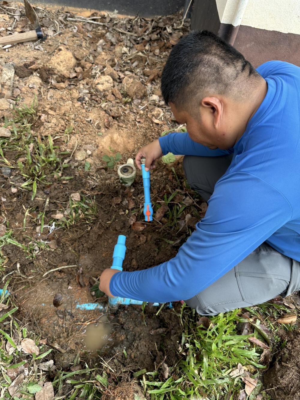 กองบริหารกายภาพฯ ซ่อมเปลี่ยนวาล์วน้ำและติดตั้งหลอดไฟ บริเวณบ้านพักรับรองอธิการบดี