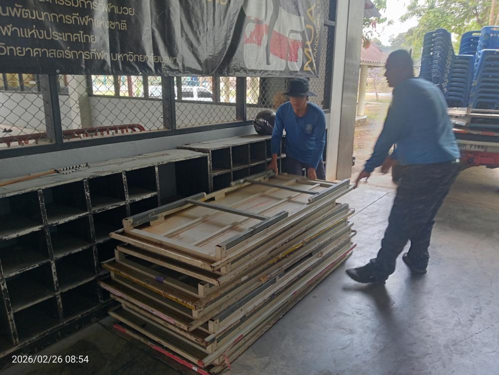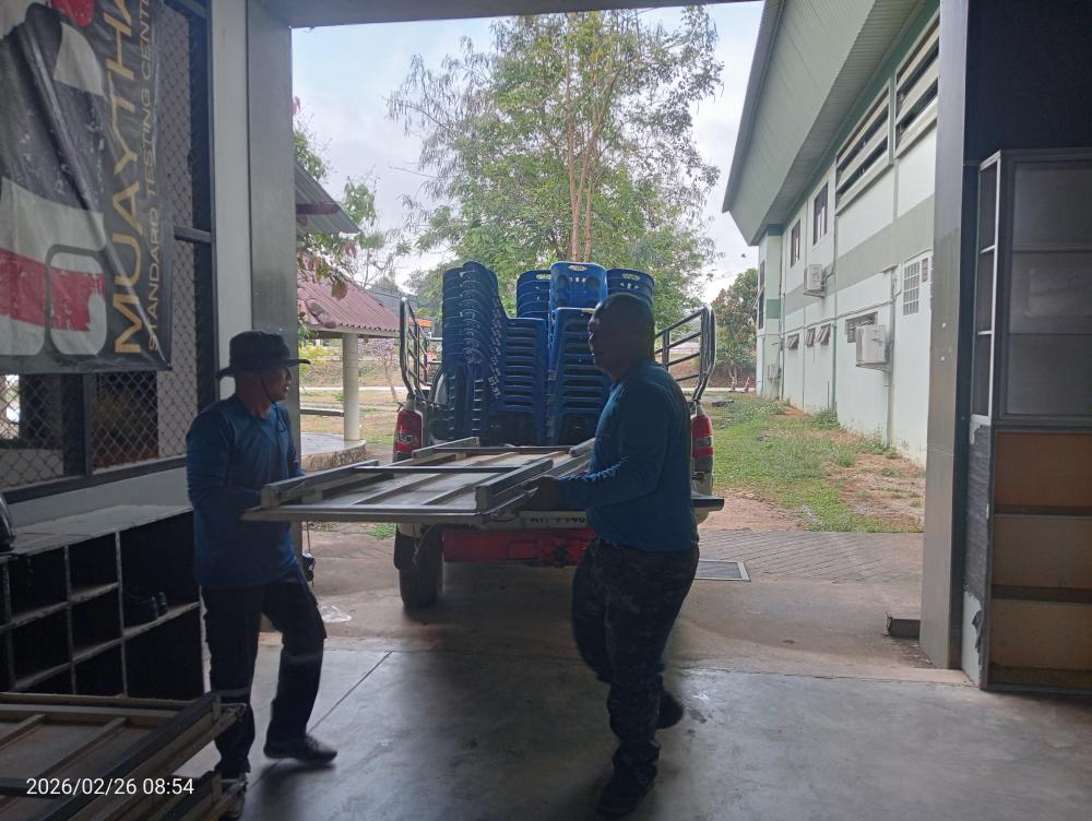 ขนโต๊ะเก้าอี้ให้นักศึกษาโปรแกรมวิชาพลศึกษาคณะครุศาสตร์