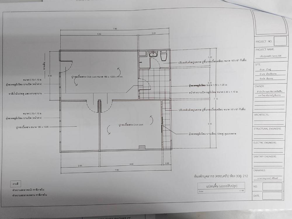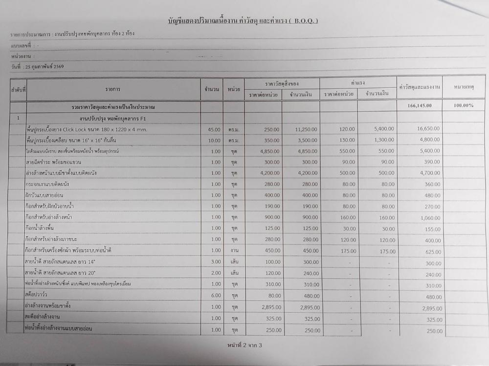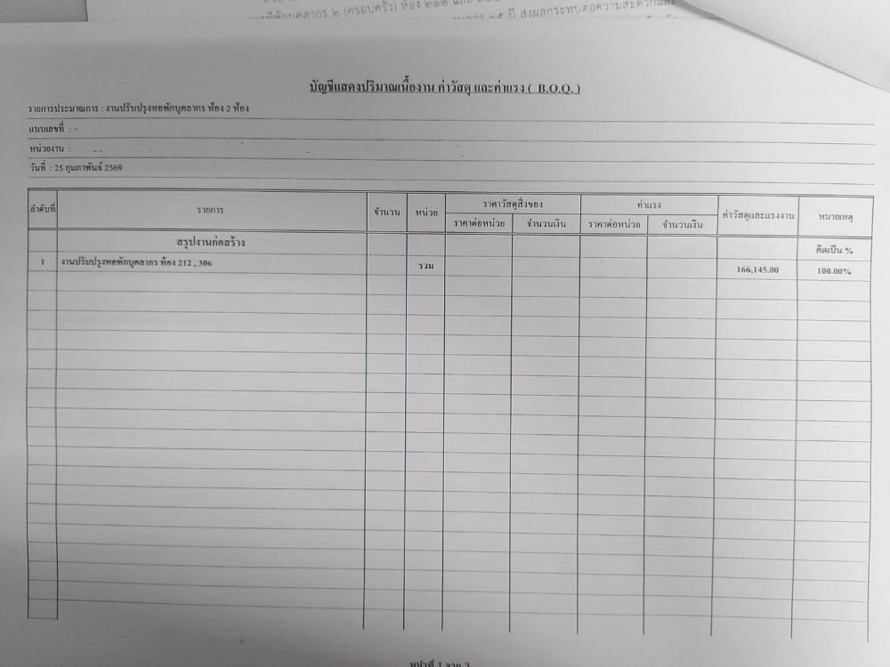 ตรวจสอบและประมาณราคาซ่อมแซม ห้อง 212 และ 306 อาคารที่พักบุคลากร 2 (ครอบครัว)