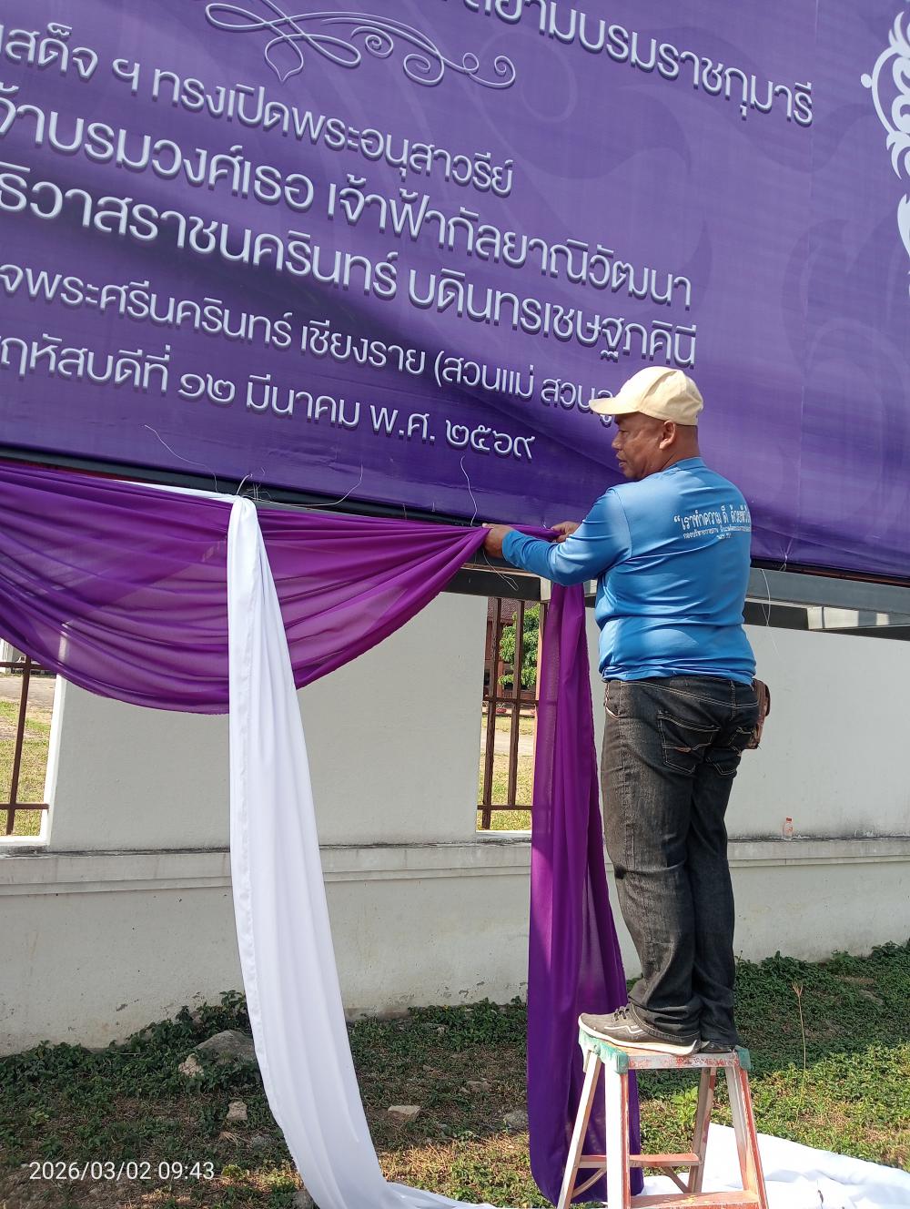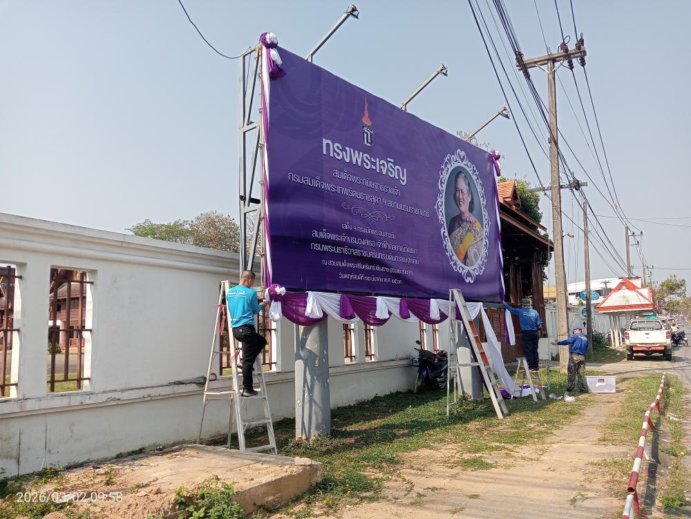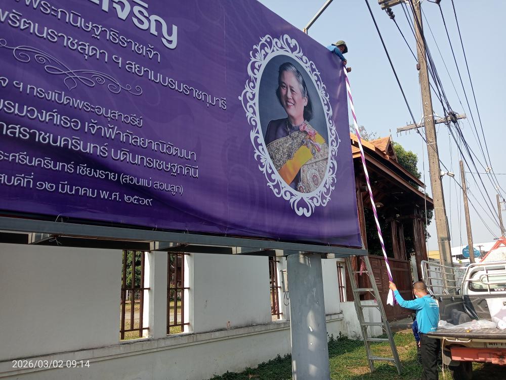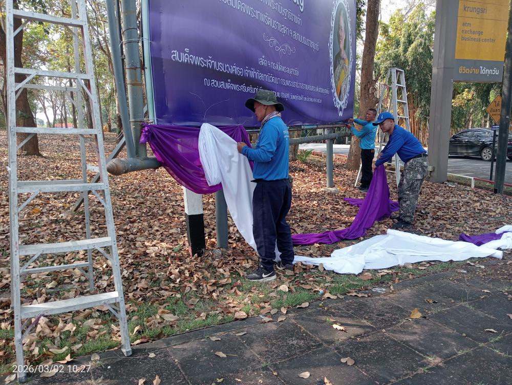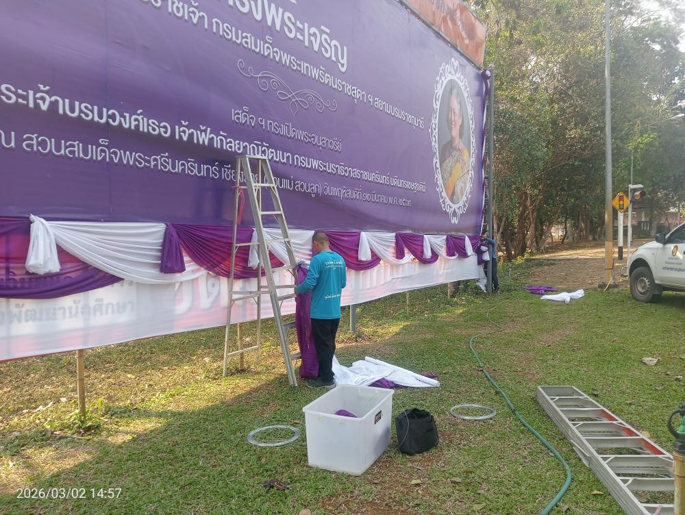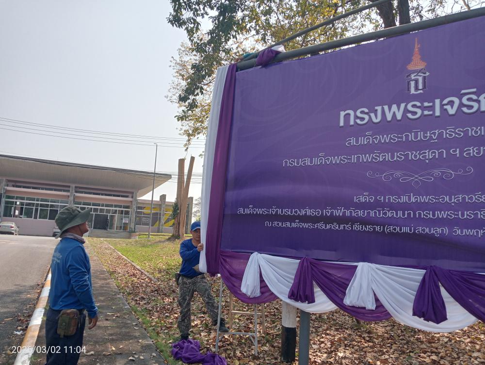 ผูกผ้างานรับเสด็จป้ายด้านหน้ามหาวิทยาลัยและภายในมหาวิทยาลัย
