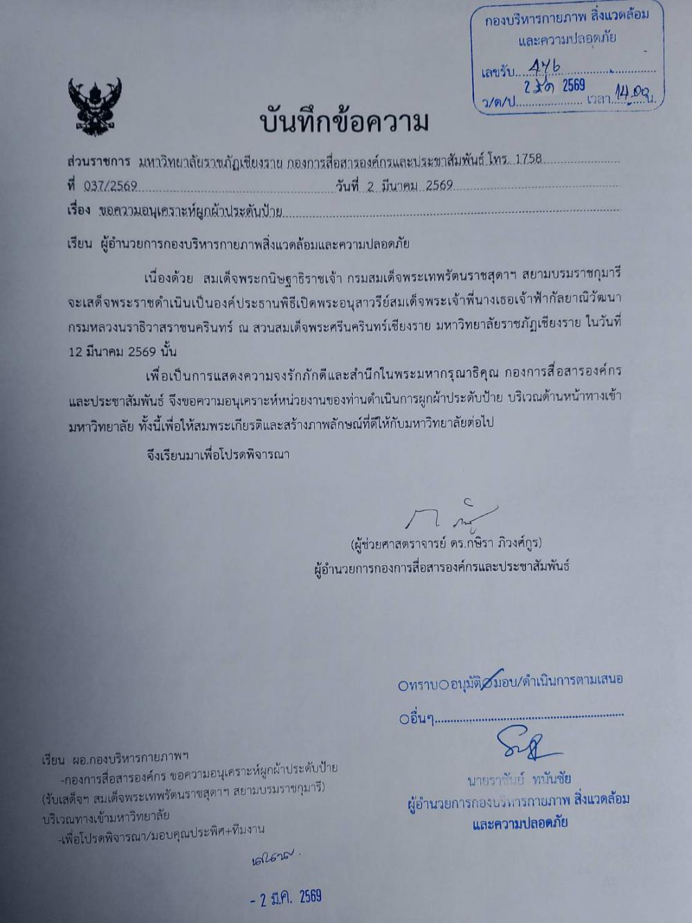 2 มีนาคม 2569 09:04:00 นายลุย ช่างลอยอัพเดทเป็นปฏิบัติงาน