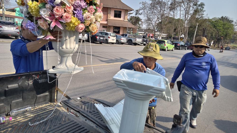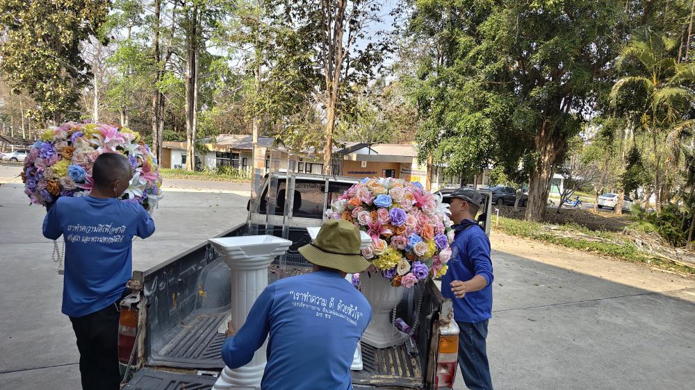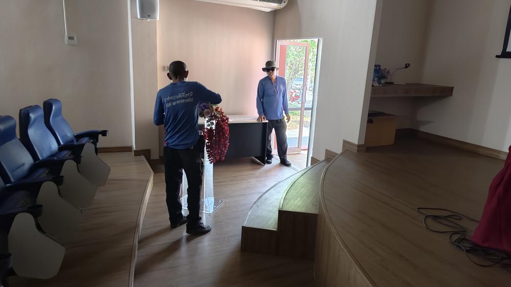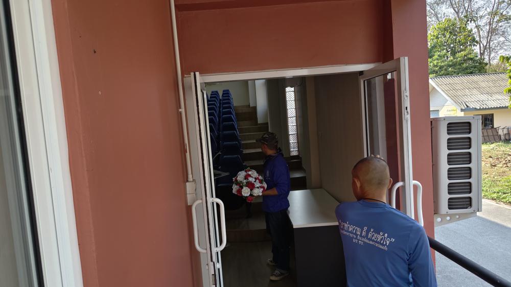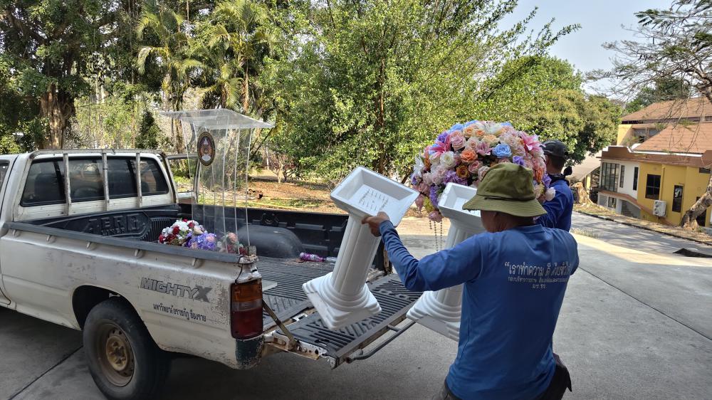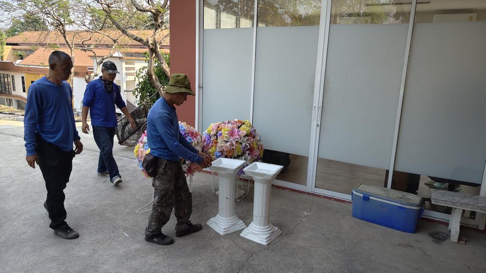กองบริหารกายภาพฯ เก็บของโพเดียมใส ดอกไม้ส่งคืนคณะคหดรรมศาสตร์