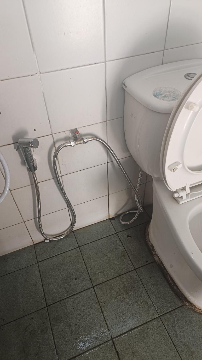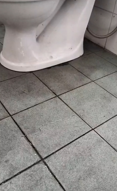 กองบริหารกายภาพฯ ชักโครกภายในห้องน้ำของสนามเทนนิสหลังป้อมพระมีน้ำไหลซึมออกมาจากฐานชักโครกตลอดเวลา