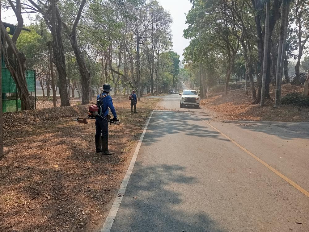เป่าใบไม้สวนไผ่หน้าโรงแรมและศูนย์วัฒนธรรม