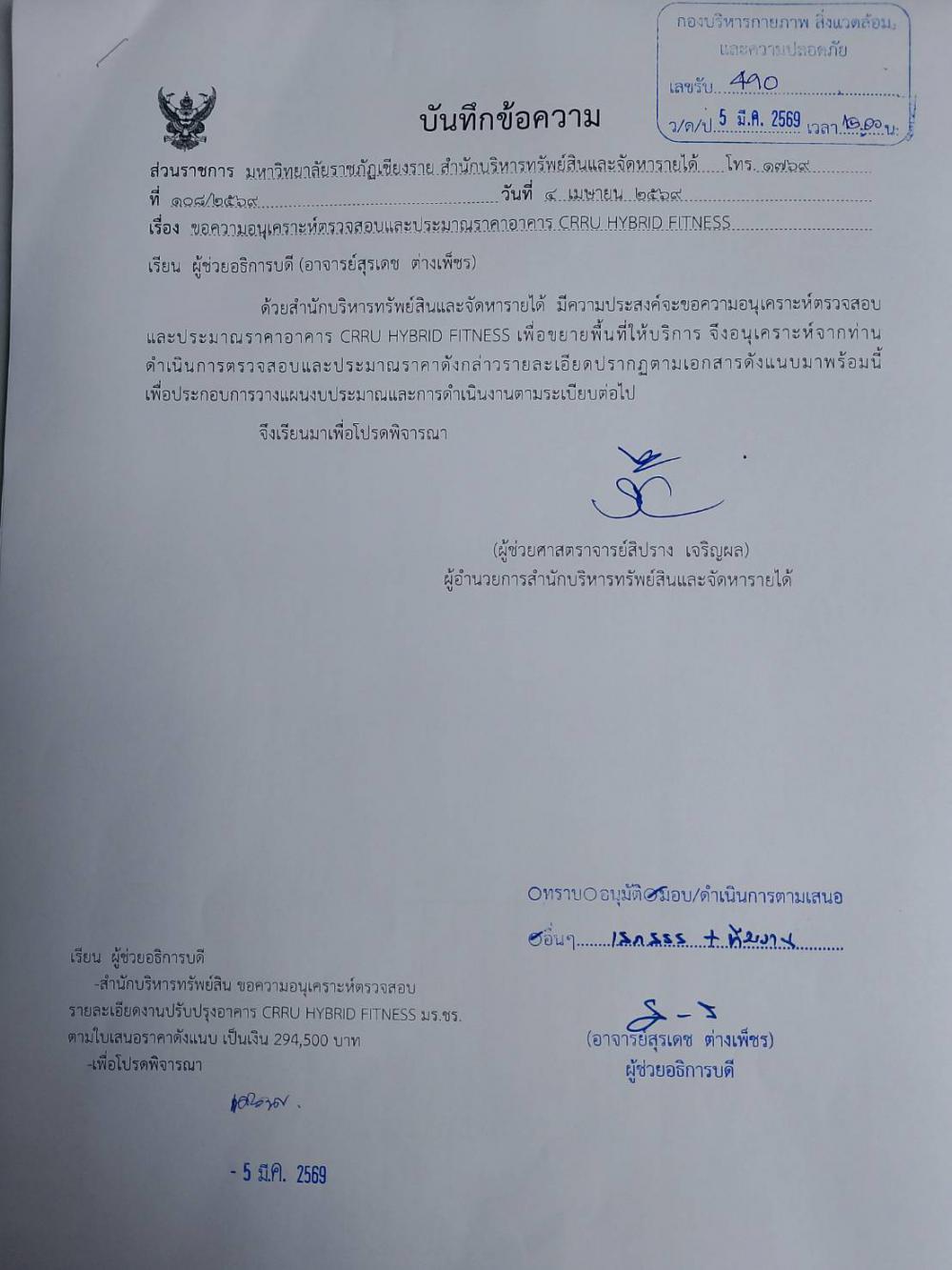 ตรวจสอบและประมาณราคาอาคาร CRRU HYBRID FITNESS