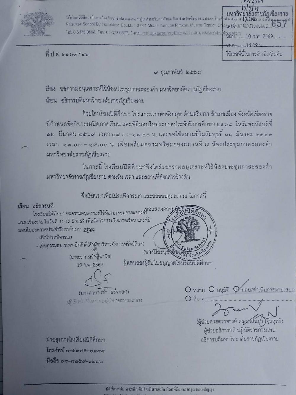 จัดสถานที่หอประชุมกาสะลองคำ ให้โรงเรียนปิติศึกษา
