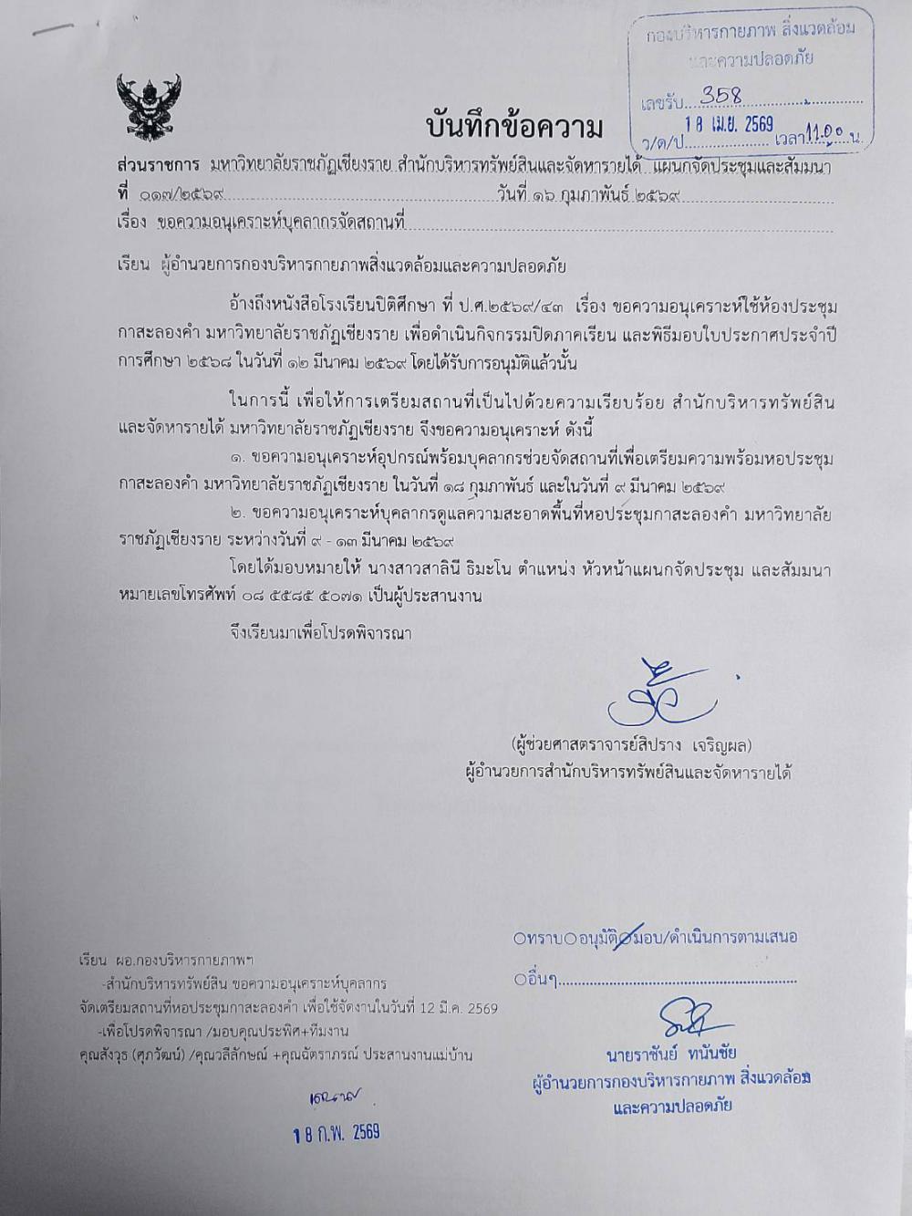 กองบริหารกายภาพฯ จัดสถานที่ หอประชุมกาสะลองคำ ให้โรงเรียนปิติศึกษา