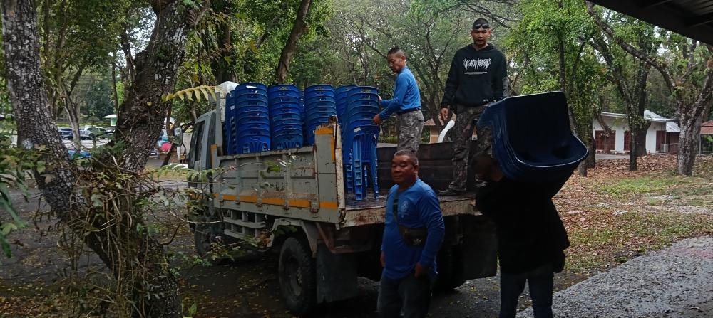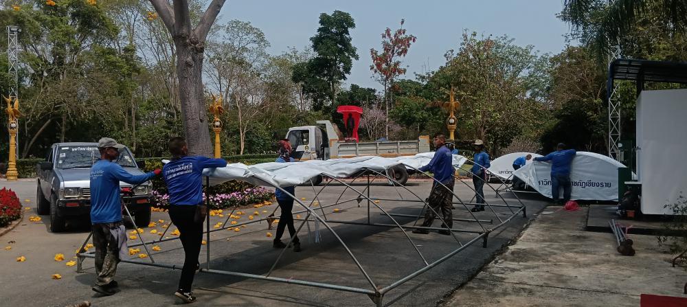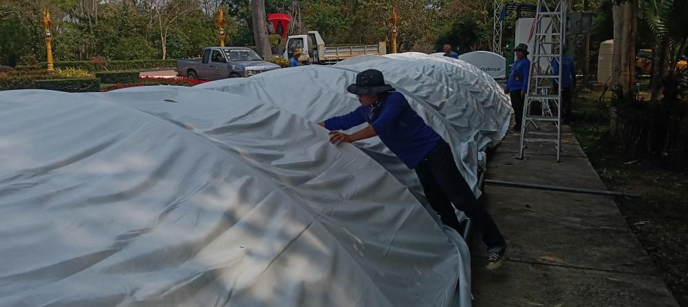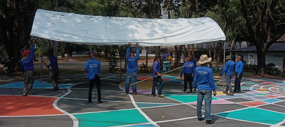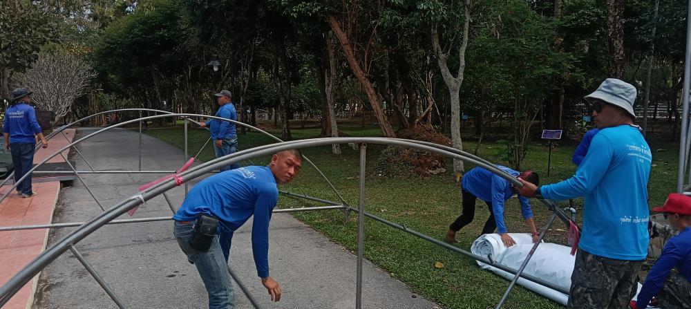กองบริหารกายภาพฯ เก็บเต๊นท์ โต๊ะ และเก้าอี้