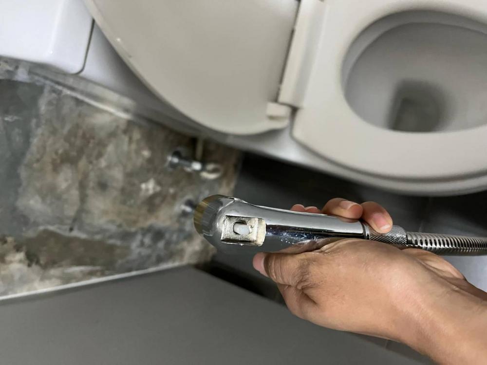 ตรวจสอบและซ่อมแซมสายฉีดชำระภายในห้องน้ำ ฝั่งสำนักส่งเสริมวิชาการและงานทะเบียน อาคารสำนักงานอธิการบดี จำนวน 3 จุด