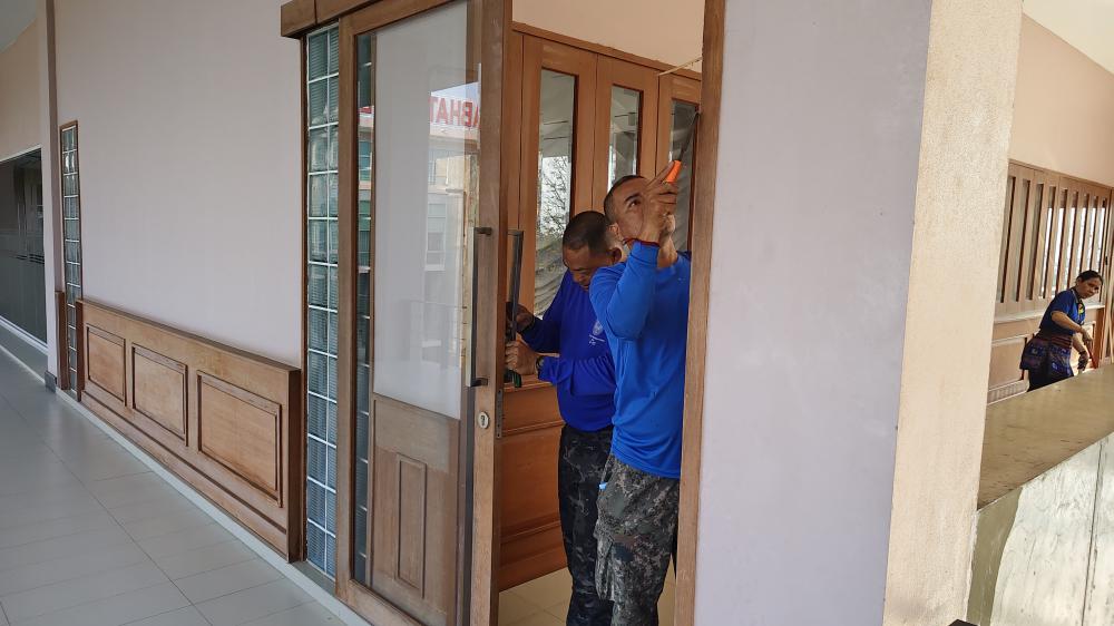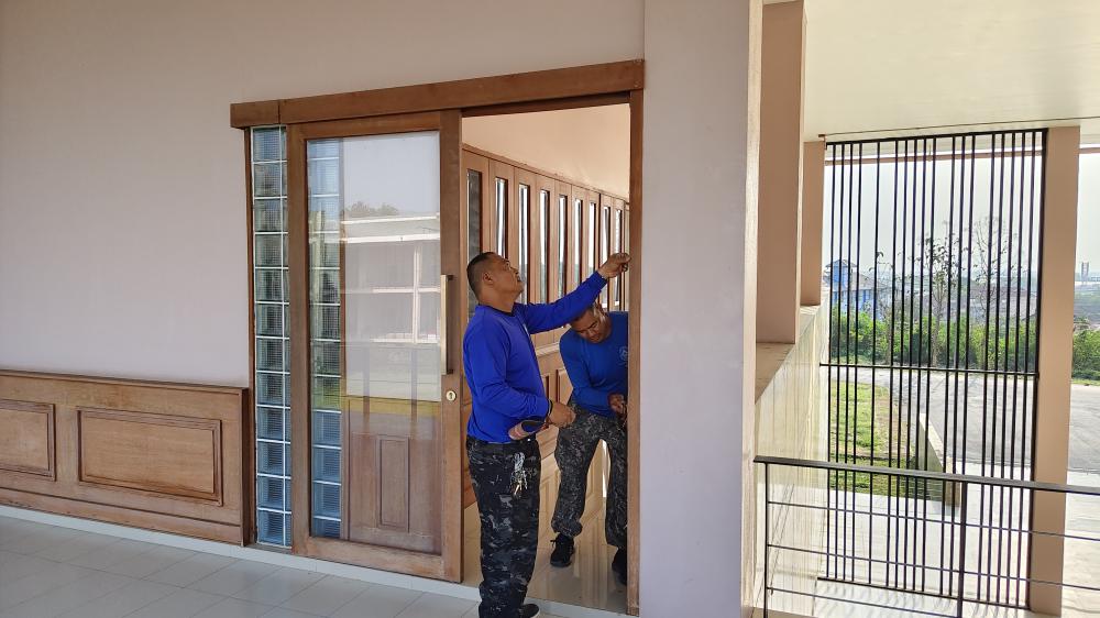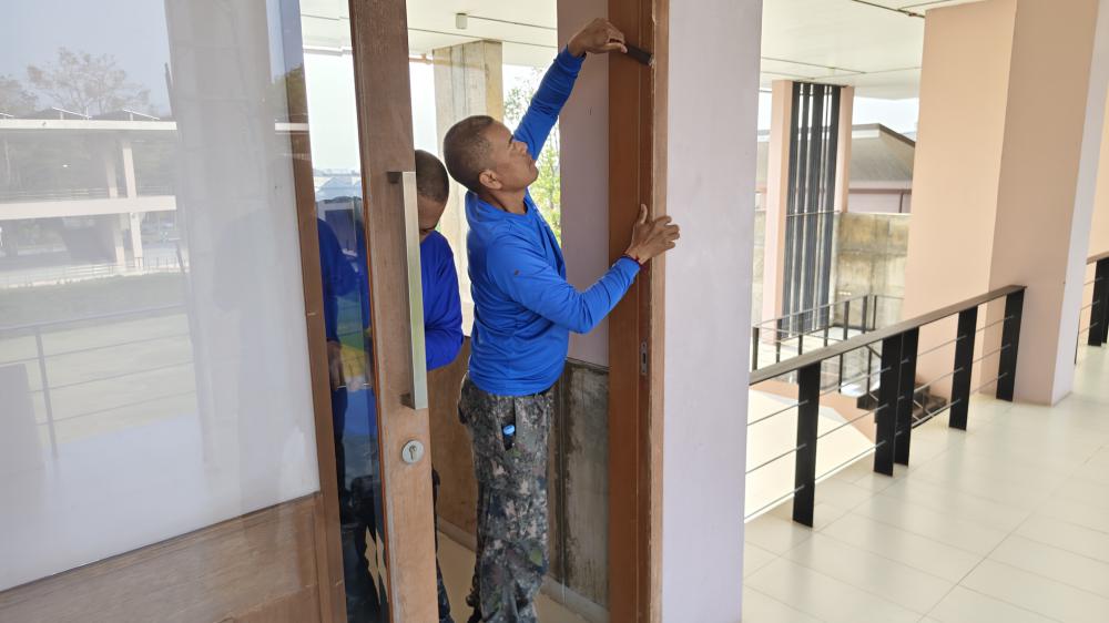 กองบริหารกายภาพฯ ซ่อมแซมประตูและฝ้าเพดานห้องผู้ช่วย อธิการบดี