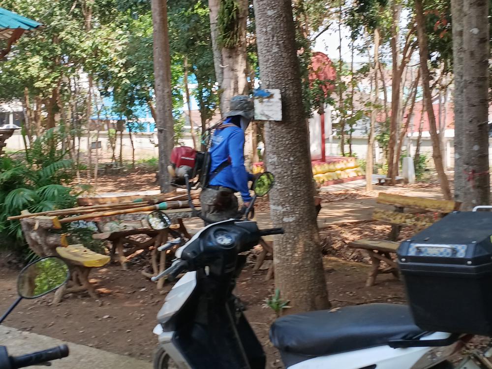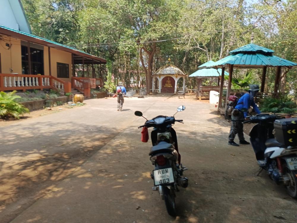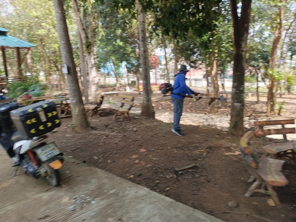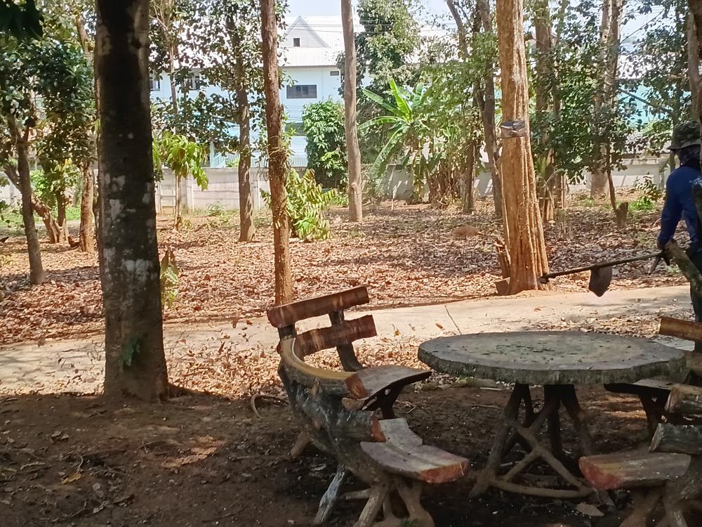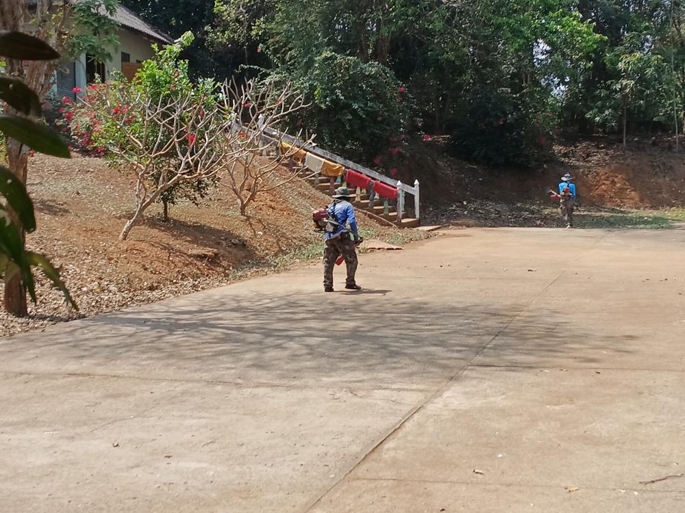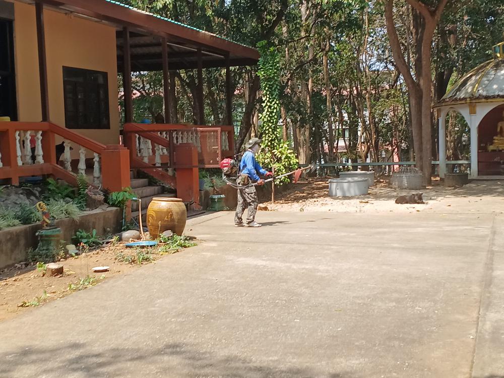 กองบริหารกายภาพฯ เป่าใบไม้บริเวณพุทธสถาน