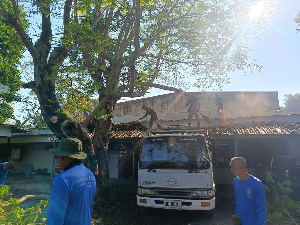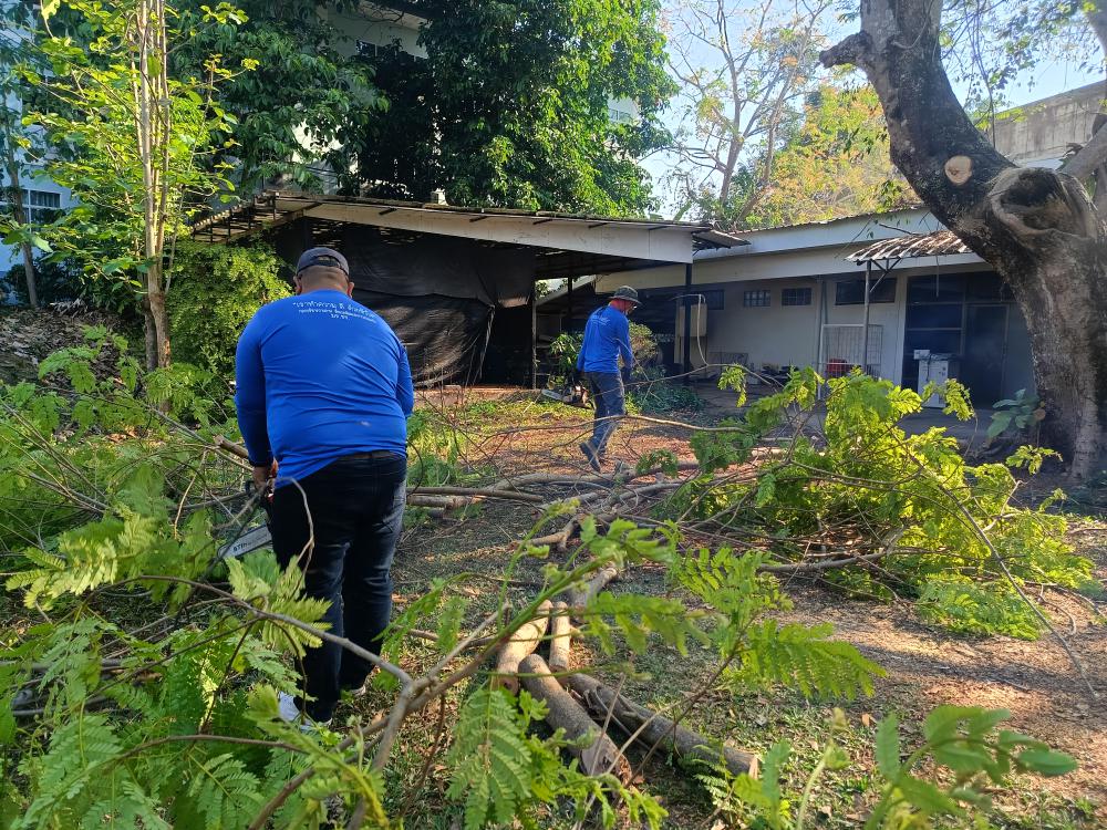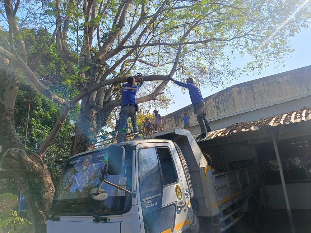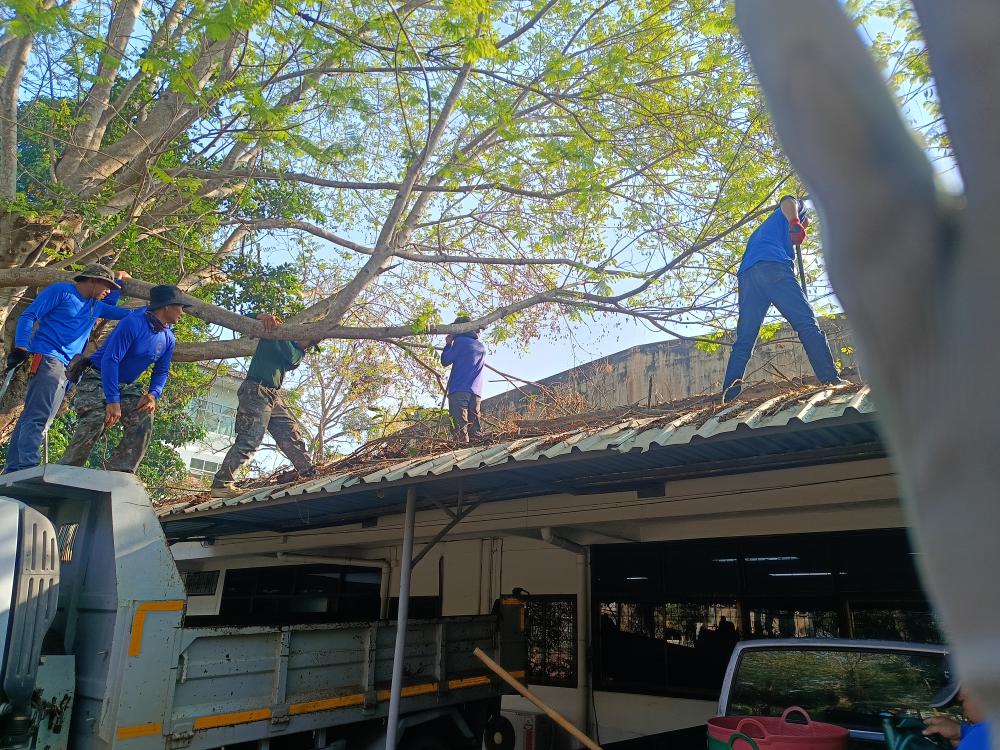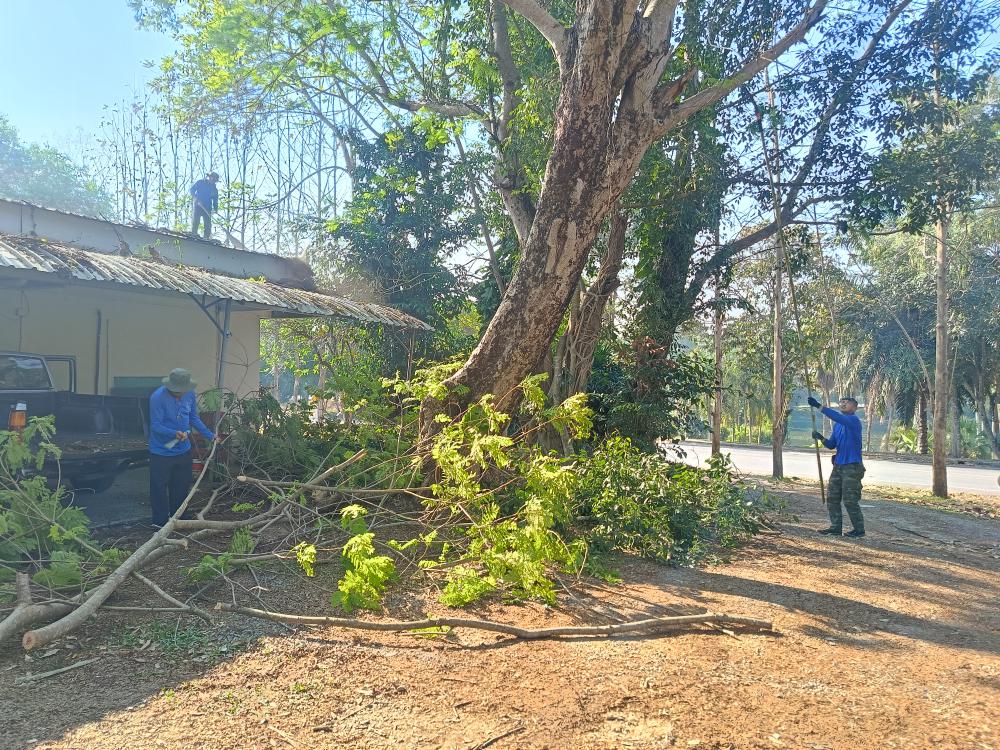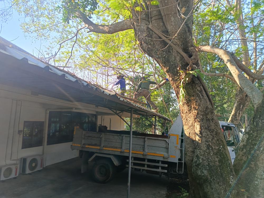 ตัดต้นไม้และกิ่งไม้บริเวณหลังโรงจอดรถ ศูนย์สิ่งแวดล้อมและทดสอบผลิตภัณฑ์