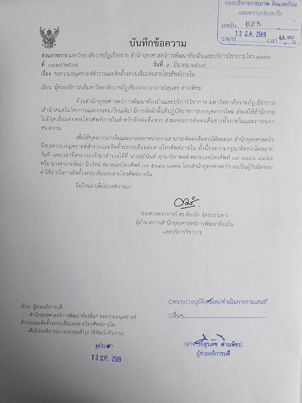 สำนักยุทธศาสตร์ฯ สำรวจและติดตั้งระบบเชื่อมต่อสายโทรศัพท์ภายใน สำนักยุทธศาสตร์ฯ