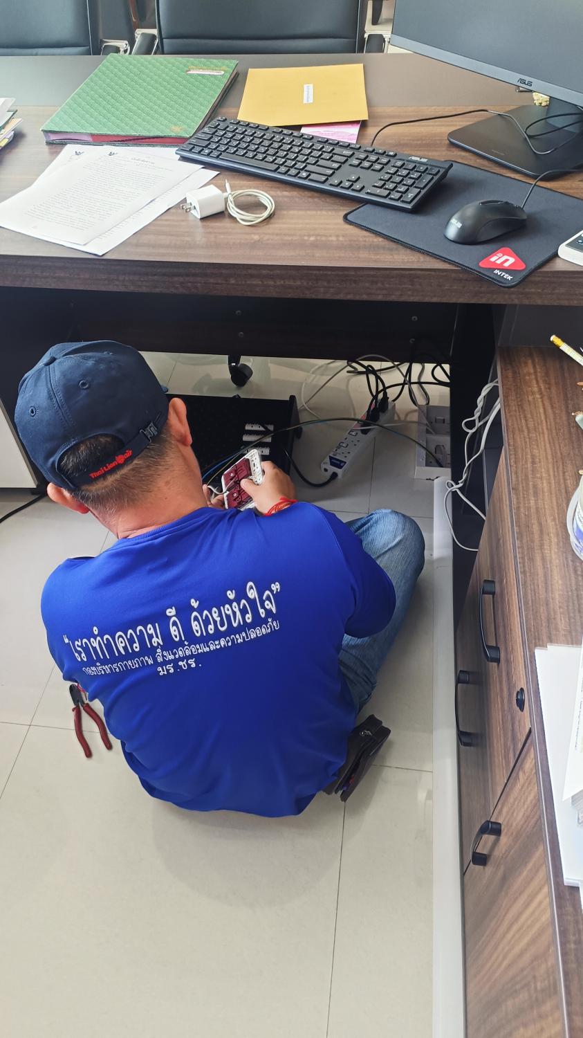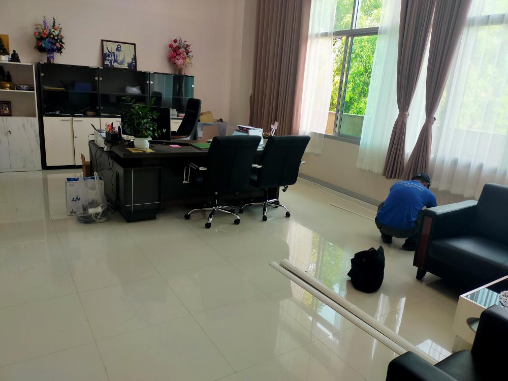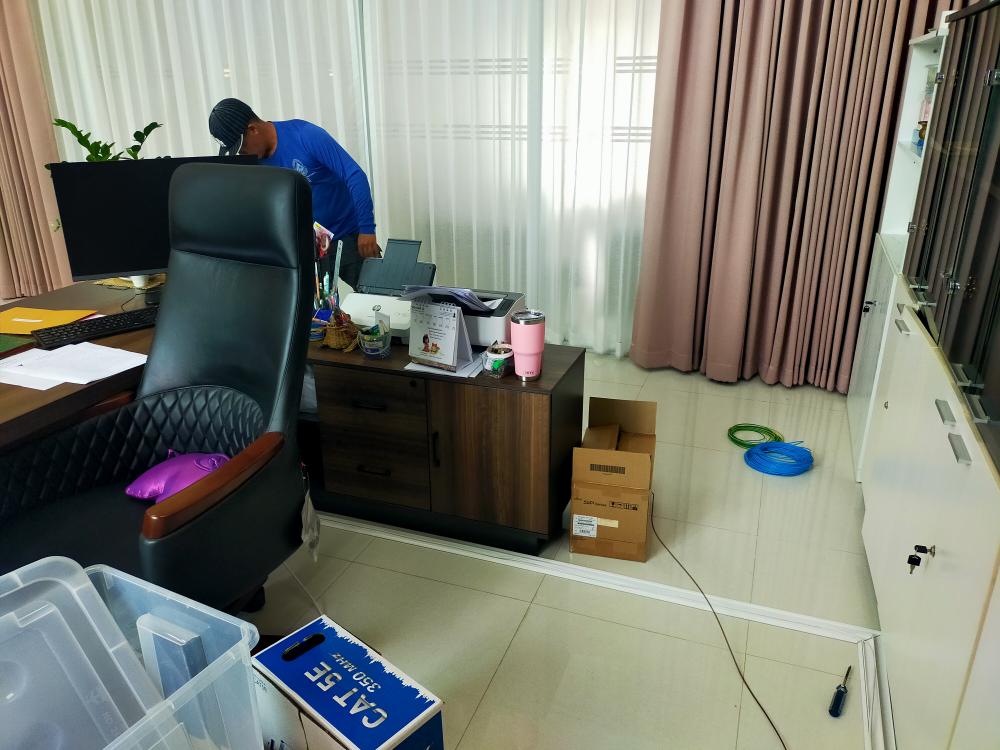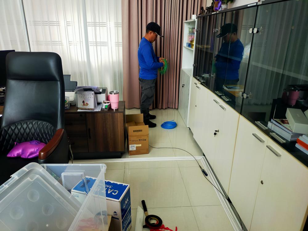 ติดตั้งปลั๊กไฟ โทรศัพท์และอินเตอร์เน็ต ห้องทำงานผู้อำนวยการสำนักงานอธิการบดี
