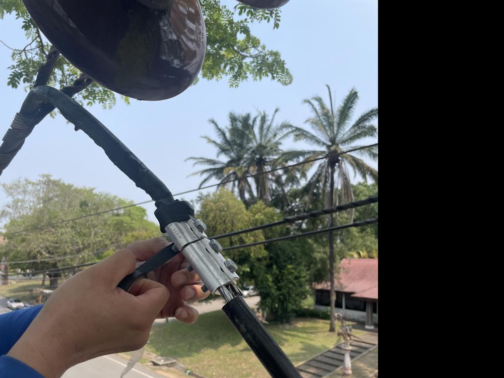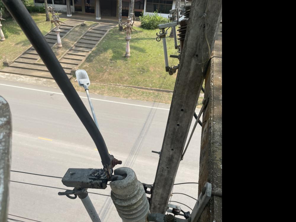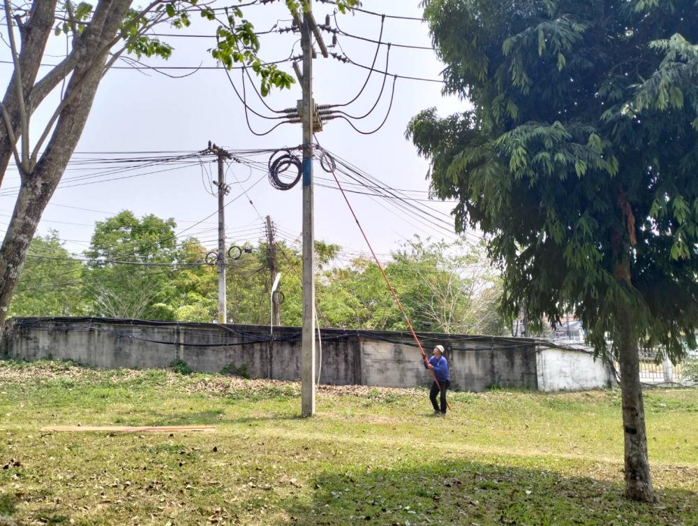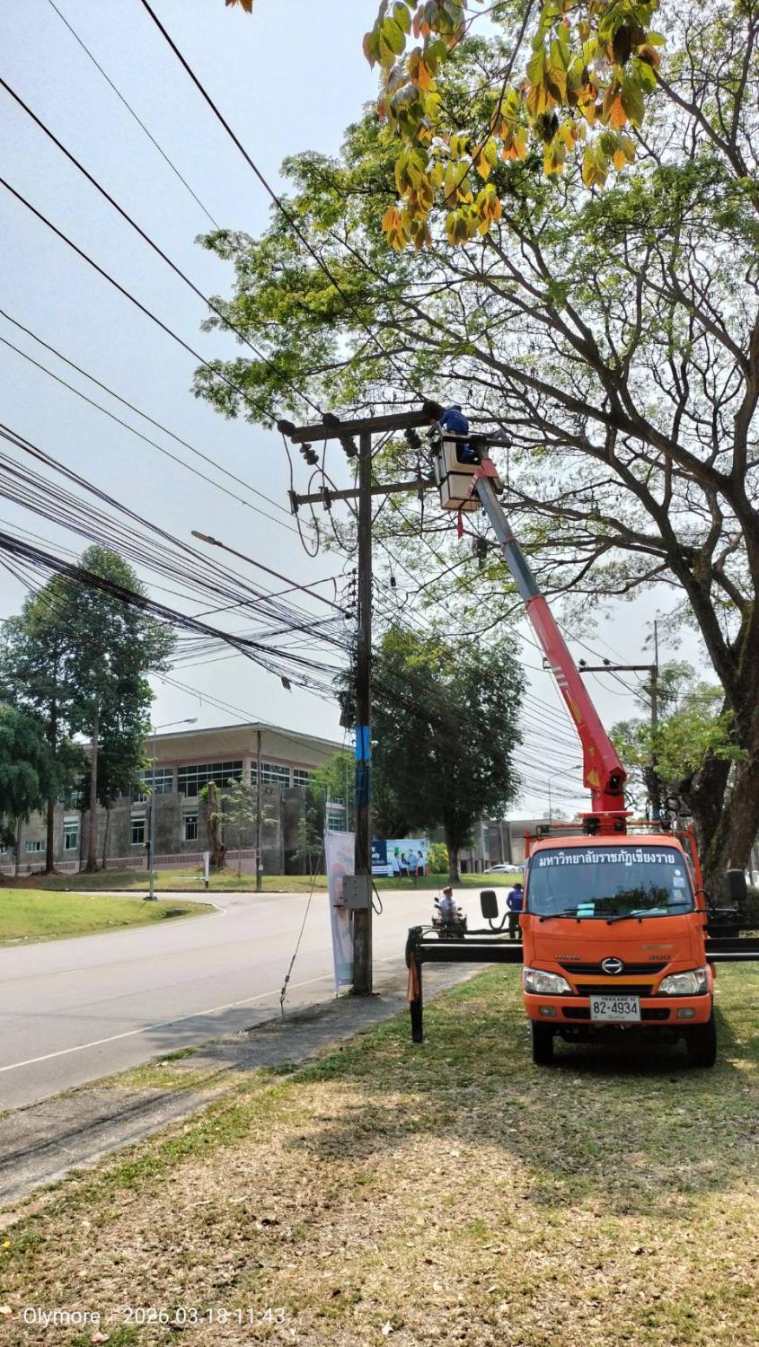 กองบริหารกายภาพฯ ตรวจสอบและซ่อมแซมสายไฟแรงสูงขาดหน้าเวทีกลางแจ้ง