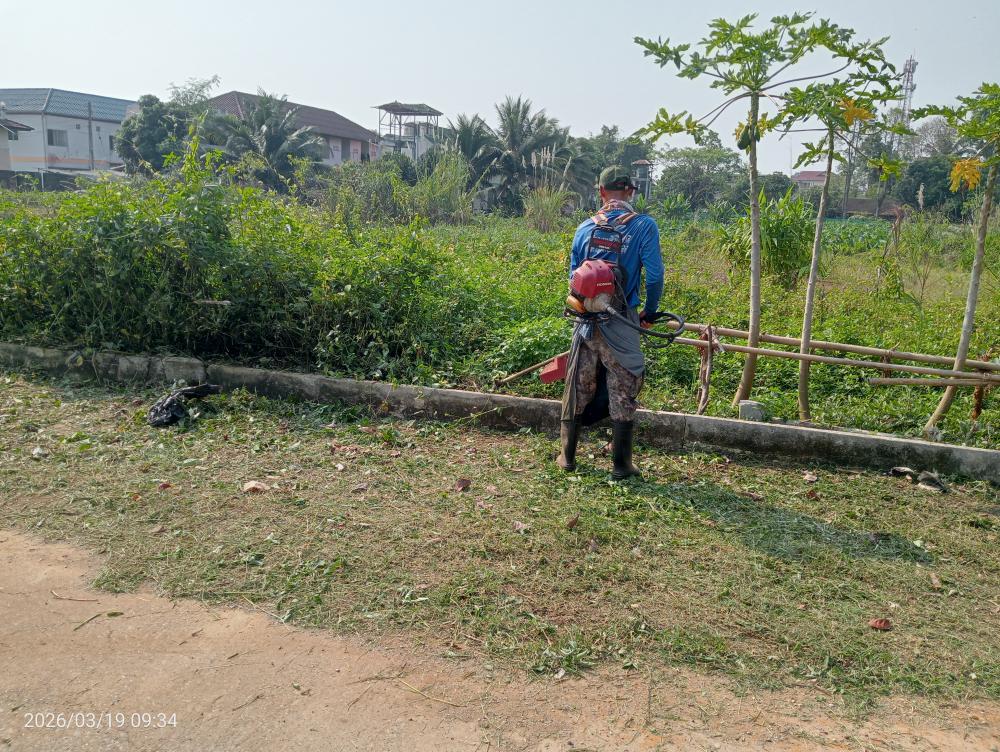 กองบริหารกายภาพฯ ตัดหญ้าบ้านพักอธิการบดี