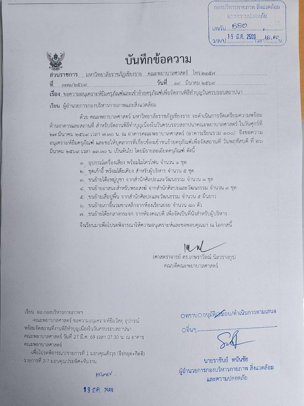 คณะพยาบาลศาสตร์ จัดสถานที่ งานพิธีทำบุญเนื่องในวันครบรอบสถาปนาคณะพยาบาลศาสตร์ (รายละเอียดในเอกสาร)