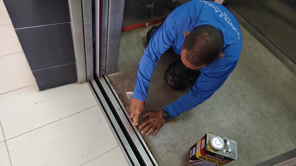 ซ่อมแซมพื้นลิฟท์สำนักงานอธิการบดี