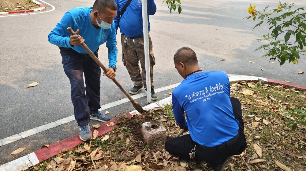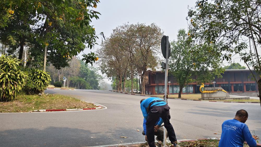คณะมนุษยศาสตร์ฯ ซ่อมแซมป้ายจราจร ทางเข้าด้านหน้าคณะมนุษยศาสตร์