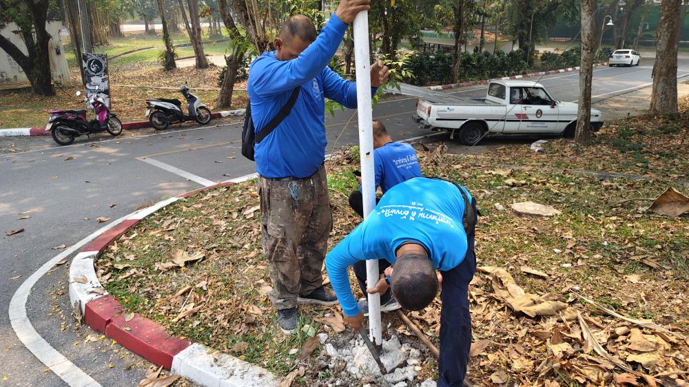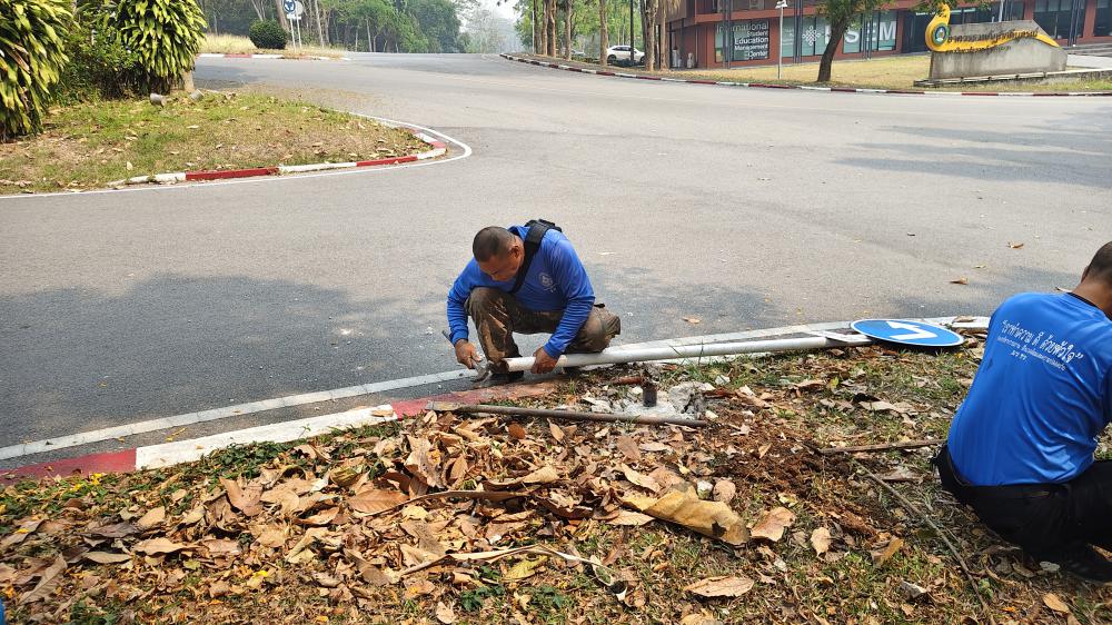 ซ่อมแซมป้ายจราจร ทางเข้าด้านหน้าคณะมนุษยศาสตร์