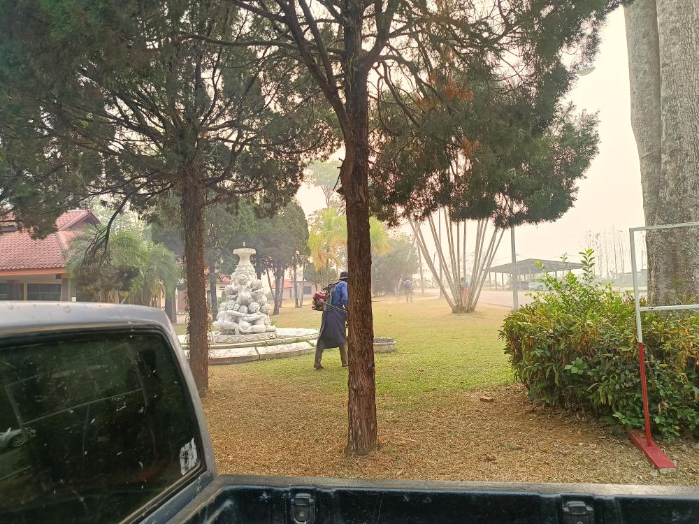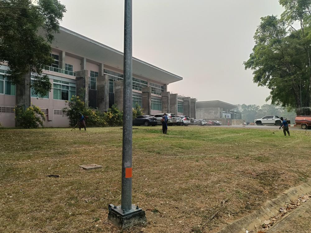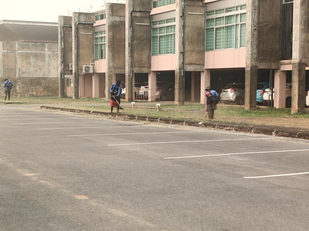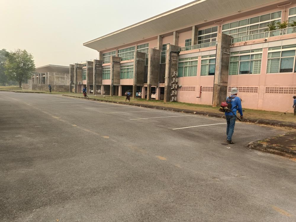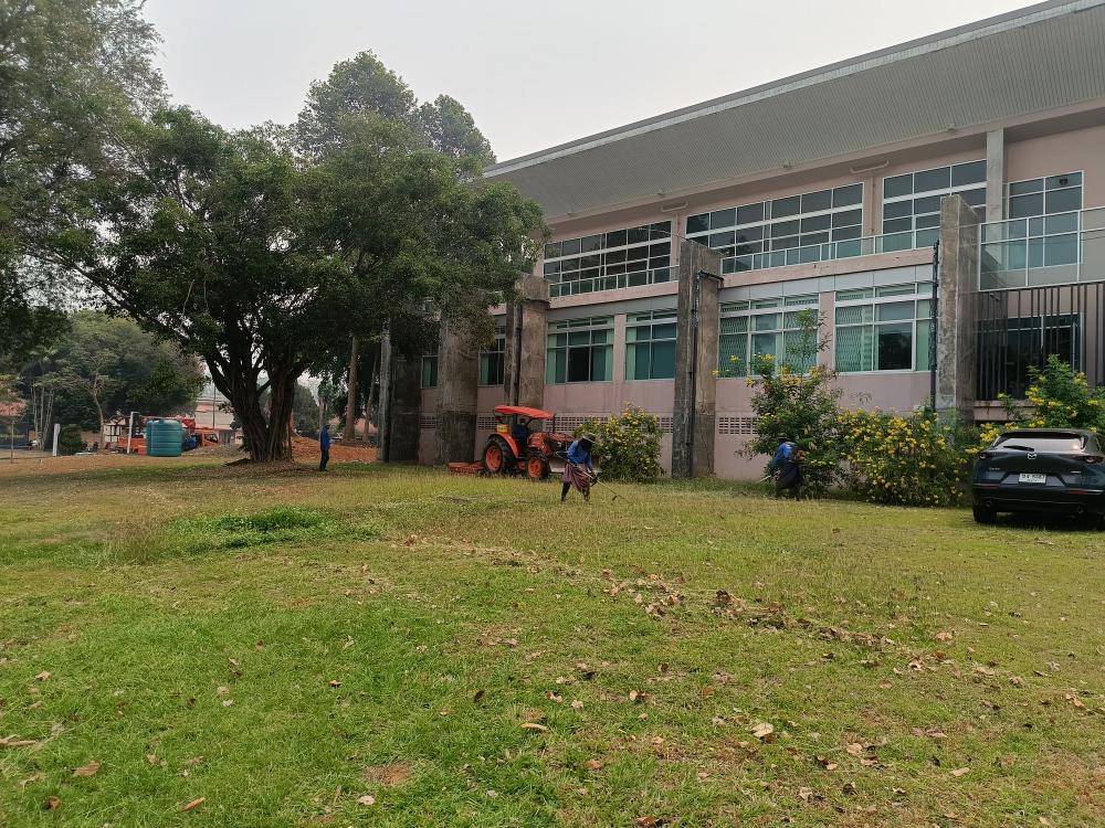 กองบริหารกายภาพฯ ตัดหญ้าหอประชุมกาสะลองคำและรอบสำนักงานอธิการบดี