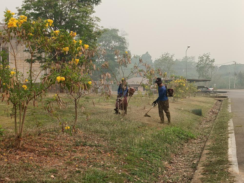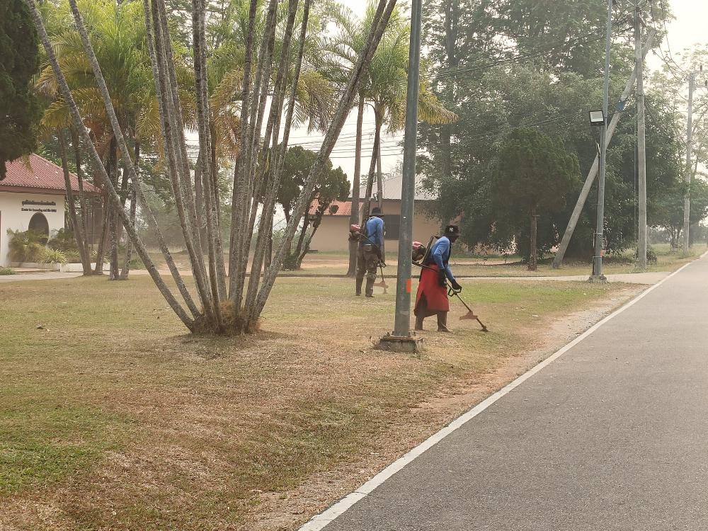 ตัดหญ้าหอประชุมกาสะลองคำและรอบสำนักงานอธิการบดี