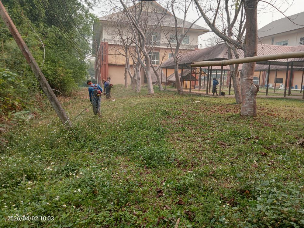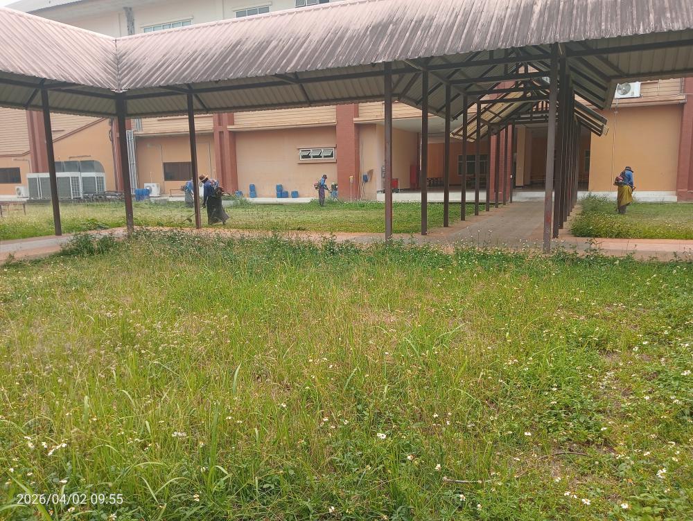 กองบริหารกายภาพฯ ตัดหญ้าอาคารพยาบาลศาสตร์