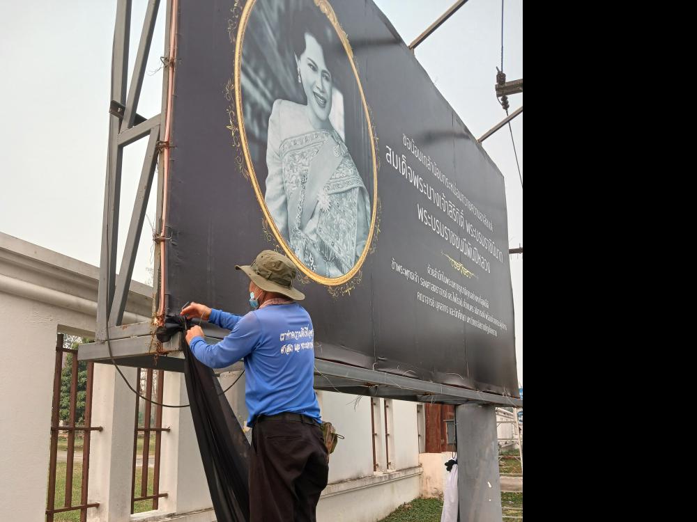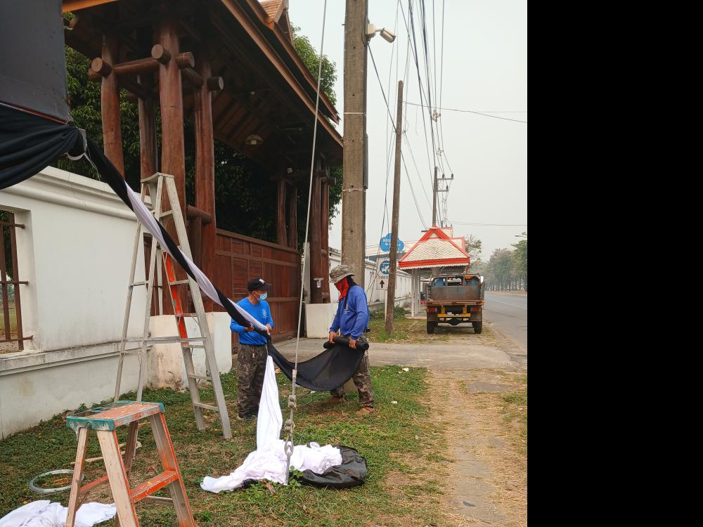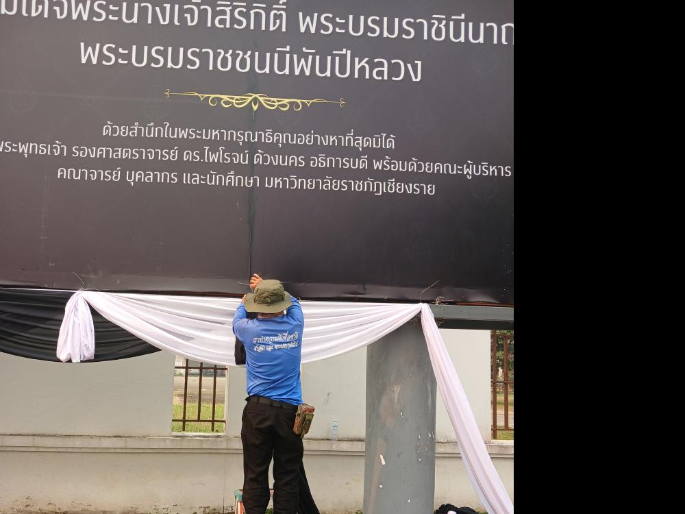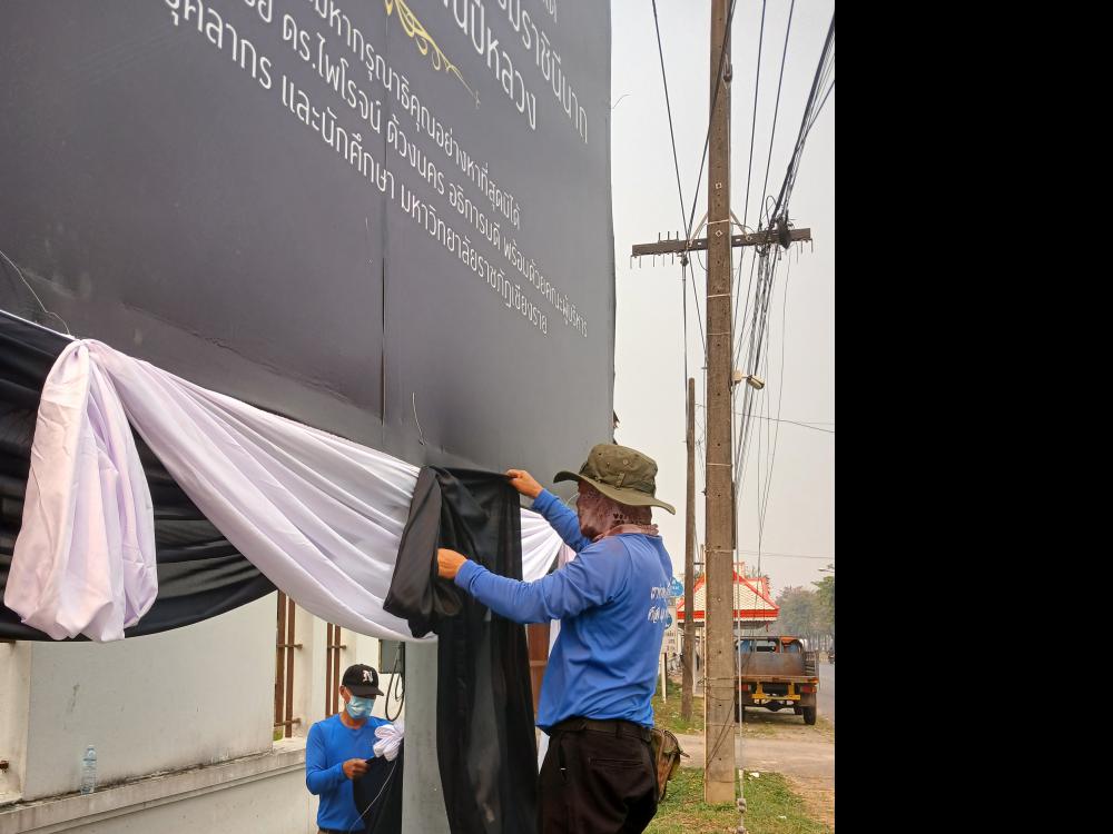 มัดผ้าหน้าป้ายทางเข้ามหาลัยราชภัฏเขียงราย