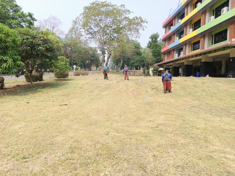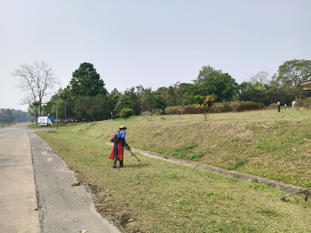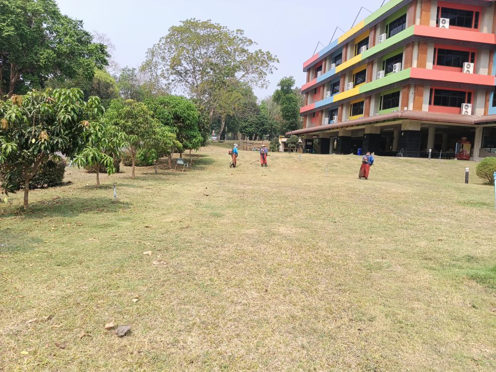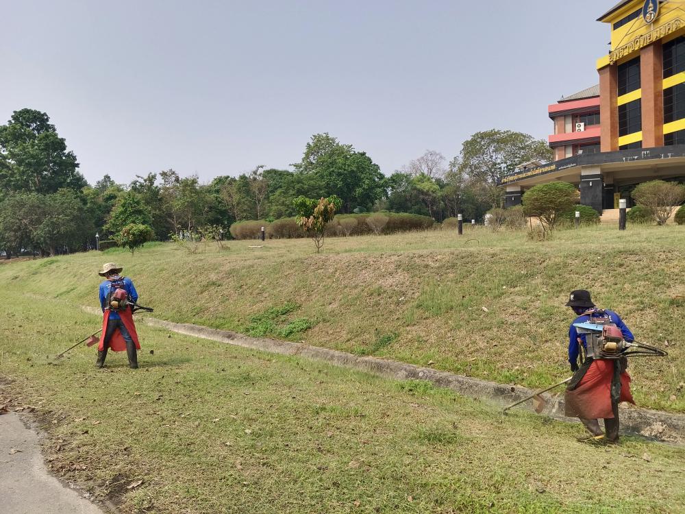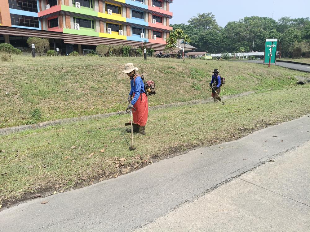 กองบริหารกายภาพฯ ตัดหญ้าอาคารยุพราช