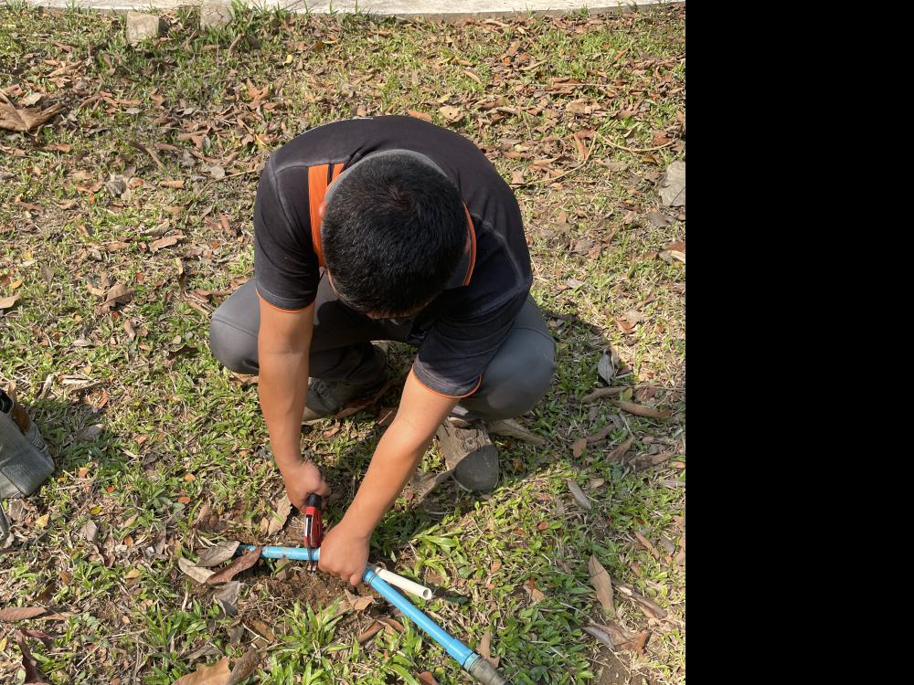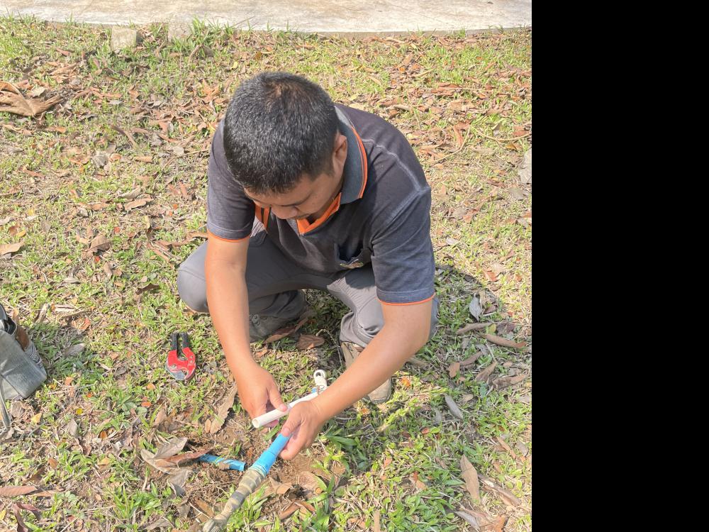 ตรวจสอบและซ่อมแซมท่อประปาบริเวณลานสวนไผ่