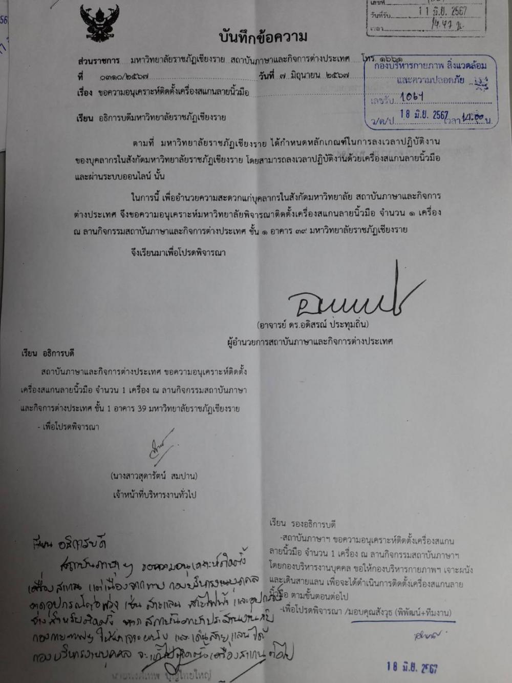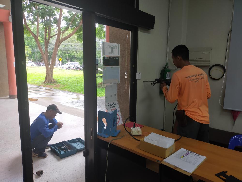 สถาบันภาษาฯ ขอความอนุเคราะห์เจาะผนังและเดินสายแลน เพื่อติดตั้งเครื่องสแกนลายนิ้วมือ บริเวณชั้น 1 อาคาร 39 สถาบันภาษาฯ