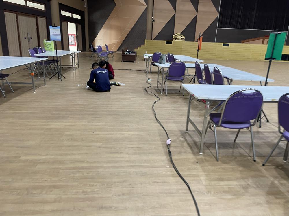 ศูนย์พัฒนาเทคโนโลยีฯ ติดตั้งระบบปลั๊กไฟใช้ในงานแสดงผลงานนวัตกรรมนักเรียน บริเวณหอประชุมใหญ่ จำนวน 45 บูท ในวันที่ 12 มีนาคม 2568 ณ หอประชุมใหญ่