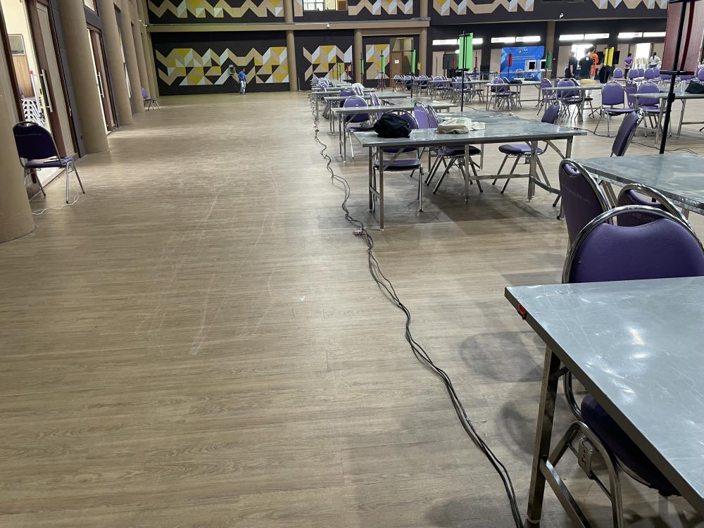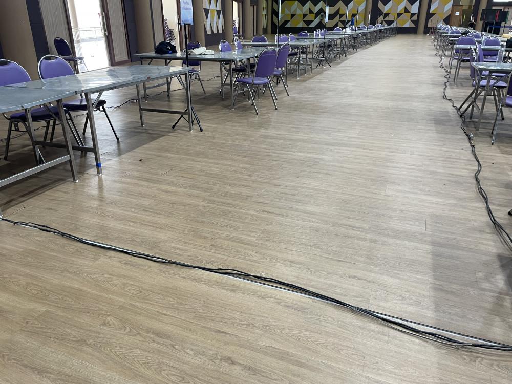 ติดตั้งระบบปลั๊กไฟใช้ในงานแสดงผลงานนวัตกรรมนักเรียน บริเวณหอประชุมใหญ่ จำนวน 45 บูท ในวันที่ 12 มีนาคม 2568 ณ หอประชุมใหญ่