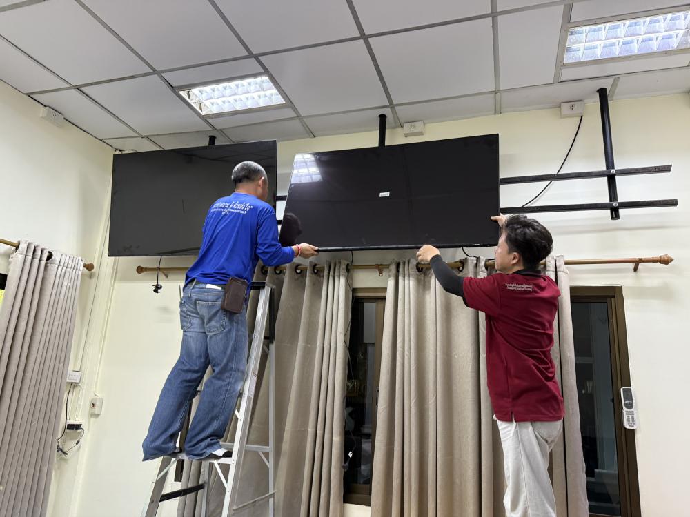 กองบริหารกายภาพฯ ติดตั้งงานระบบและจอแสดงผล ห้องศูนย์ต่อต้านภัยพิบัติฯ