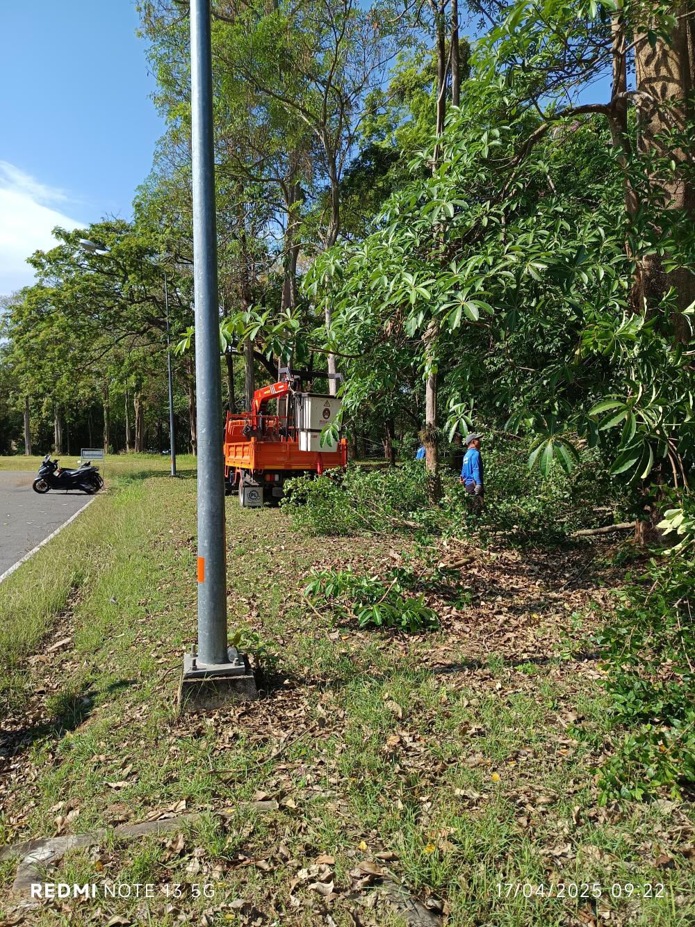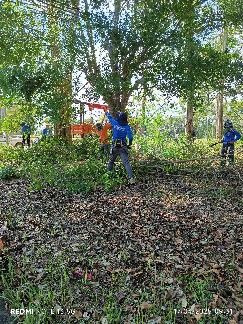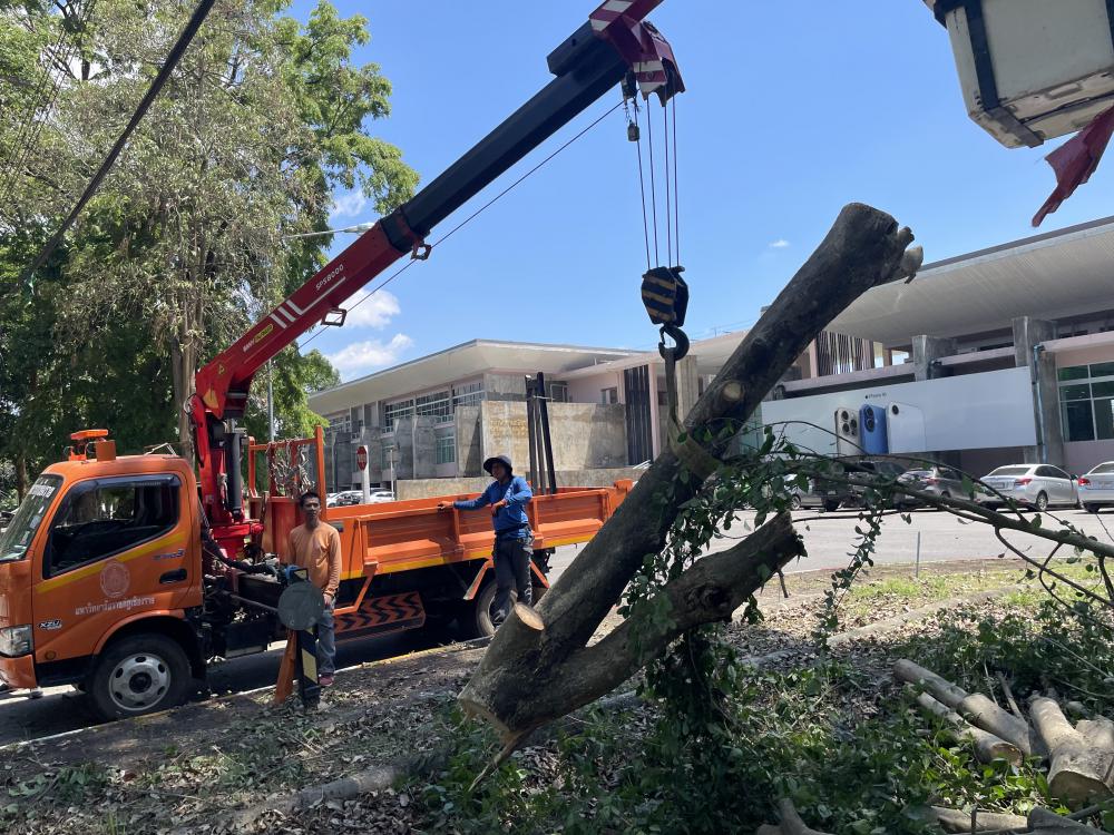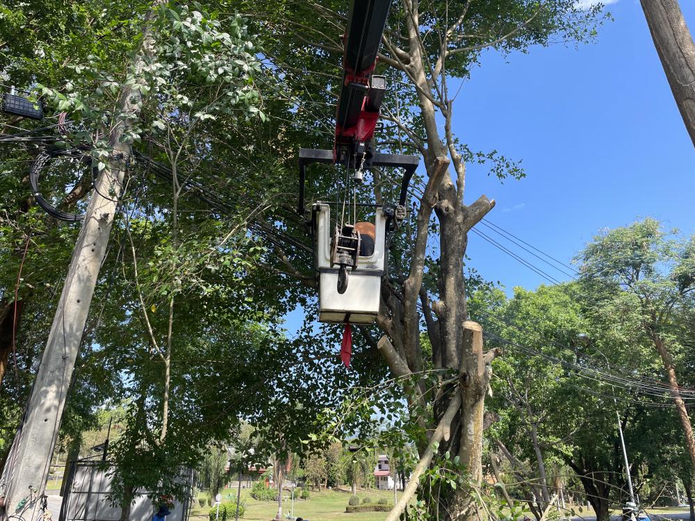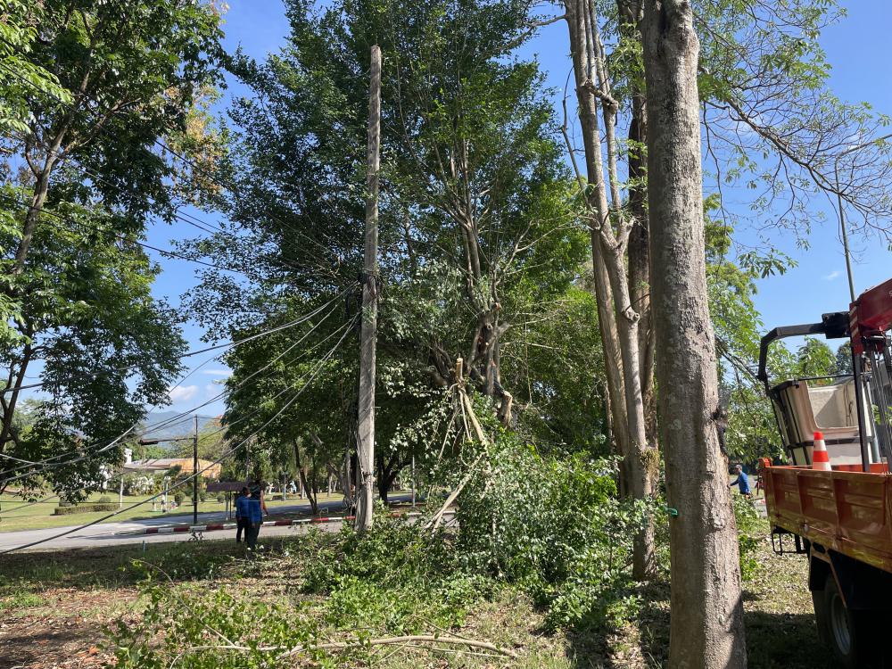ตัดกิ่งไม้แนวสายไฟข้างอาคารบริหารงานกลางและเก็บรวบสายสื่อสาร